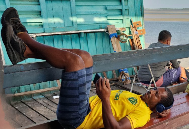 Leia maisDetailsUm brasileiro esperando a maré subir e embarcar na balsa para Algodoal no Pará.