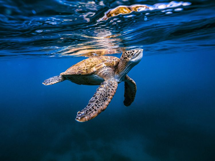 Registrada no Santuário Ecológico da Ilha das Cabras, em Ilhabela, esta imagem captura a tartaruga-verde em seu momento de respiro....