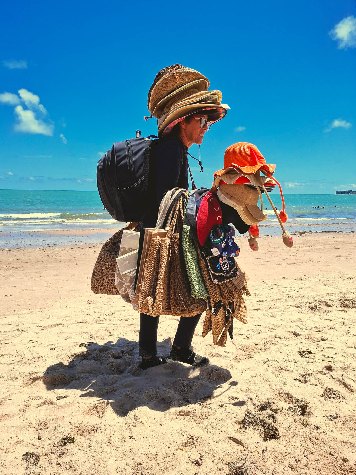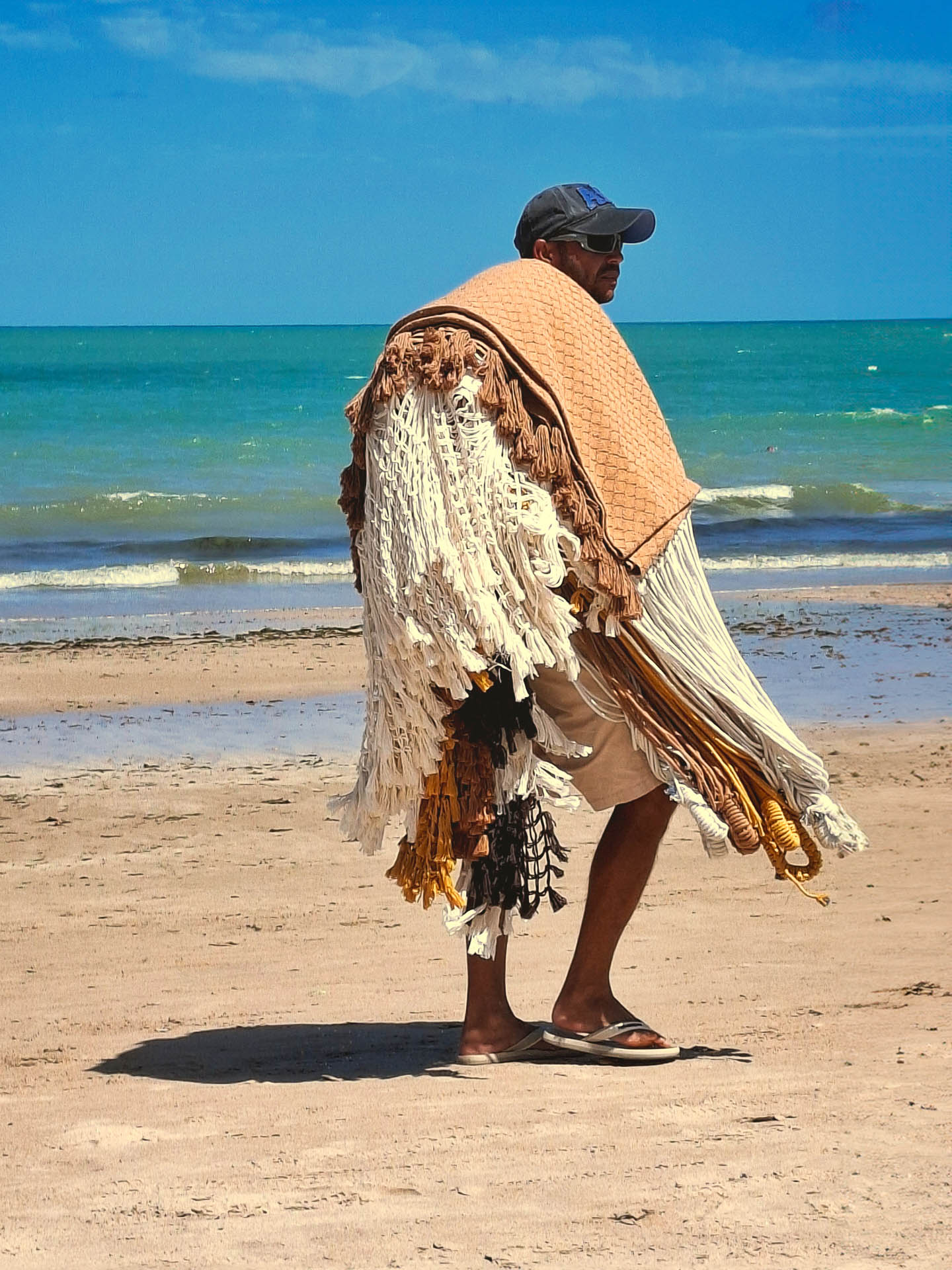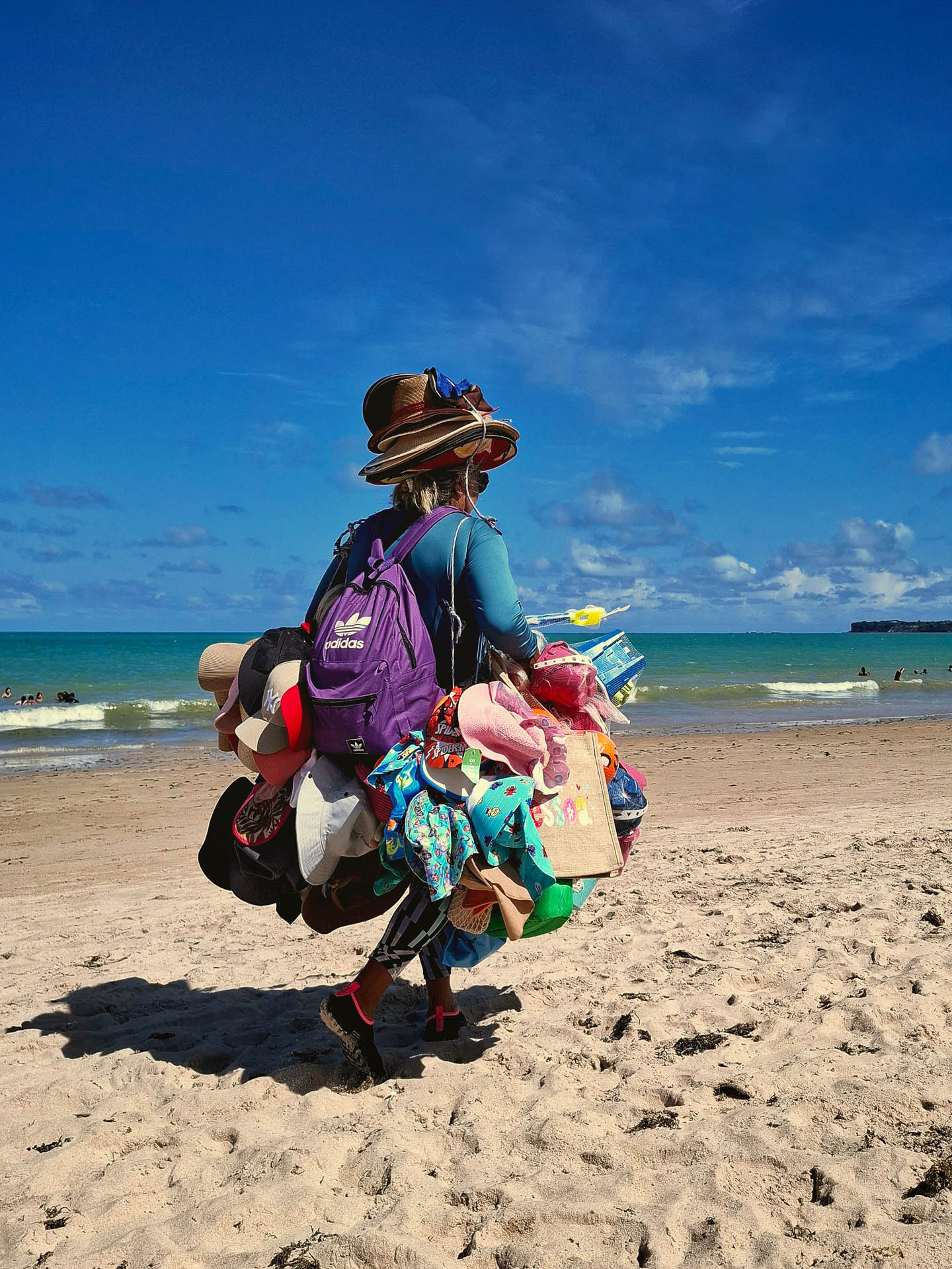 Como território de pluralidades, as praias do Brasil refletem em suas areias os contrastes de uma sociedade desigual: enquanto uns a usufruem como espaços de lazer, outros a têm como base para o sustento de sua família. Através das estações do ano, os trabalhadores do comércio ambulante transitam no litoral, carregando o peso não apenas das mercadorias em seus ombros, mas também o de suas histórias de vida – nem sempre visíveis, nem sempre percebidas.