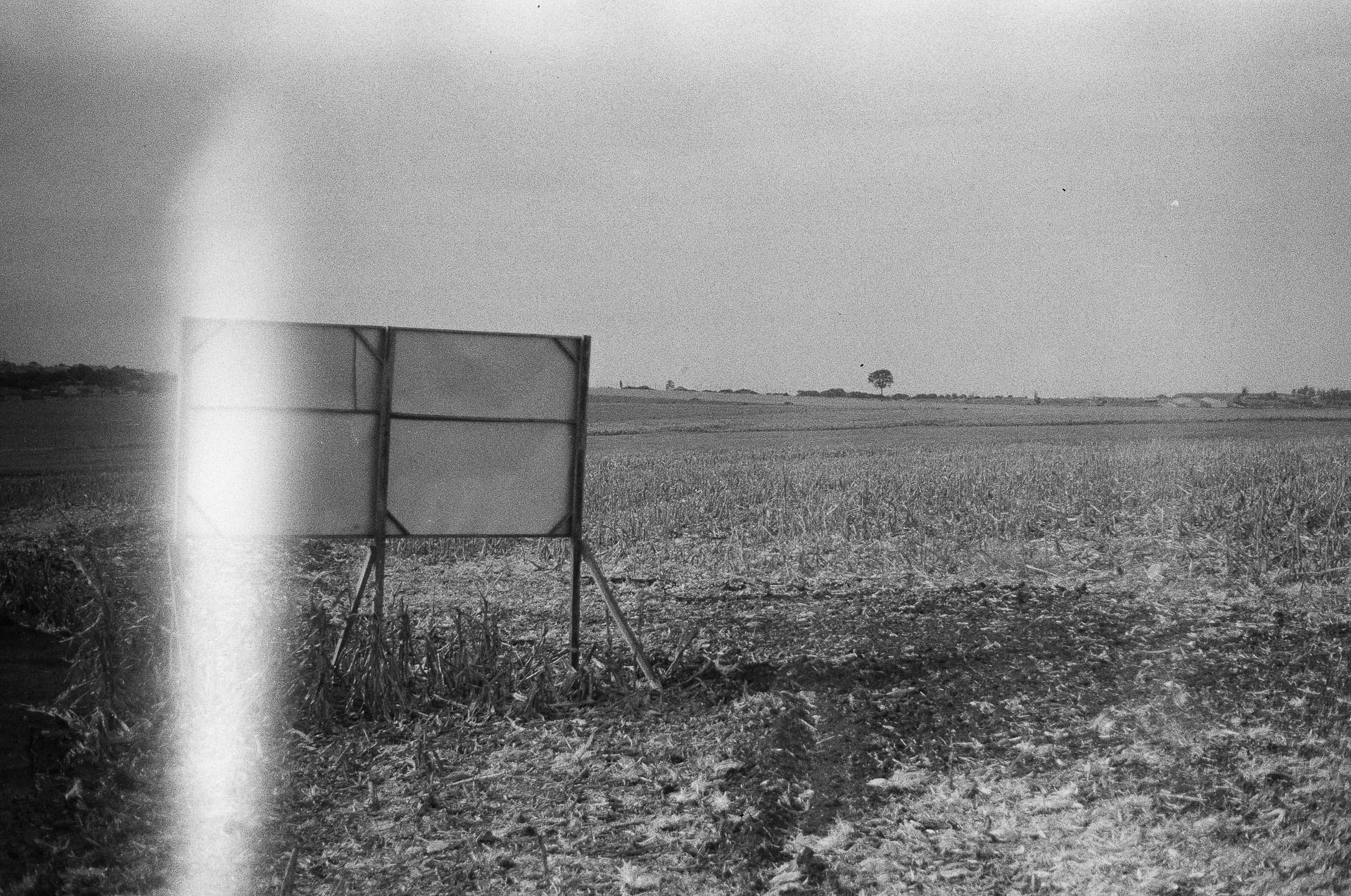 Este ensaio é um inventário do que o latifúndio produz além da commodity: produz ausência. Ausência de árvore, de pessoa, de cidade, de futuro visível. Fotografado em filme Svema NH 25H: material analógico de origem soviética, áspero e sem concessões. O ensaio trata a paisagem como documento de uma violência que já se normalizou demais para ser chamada pelo nome.