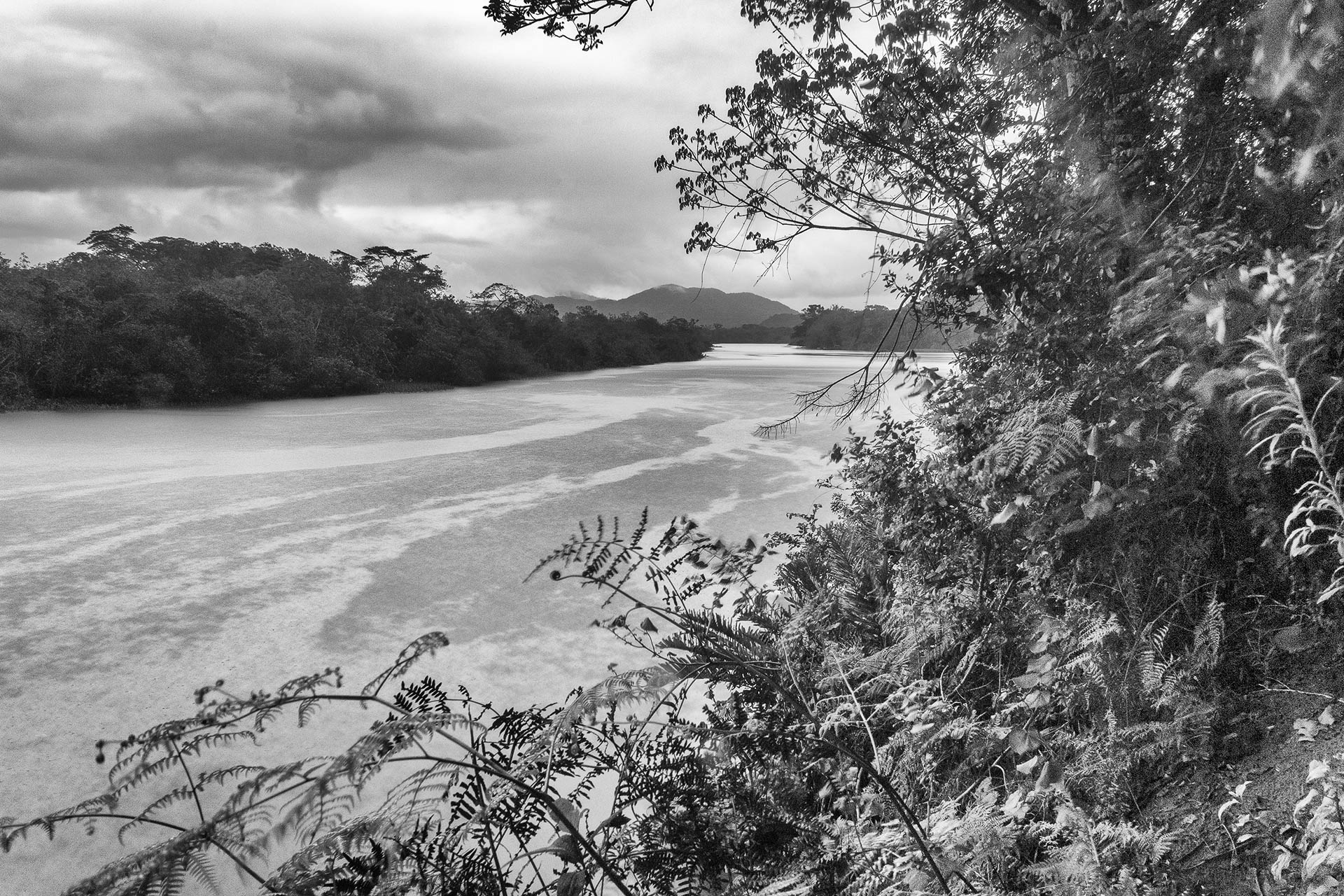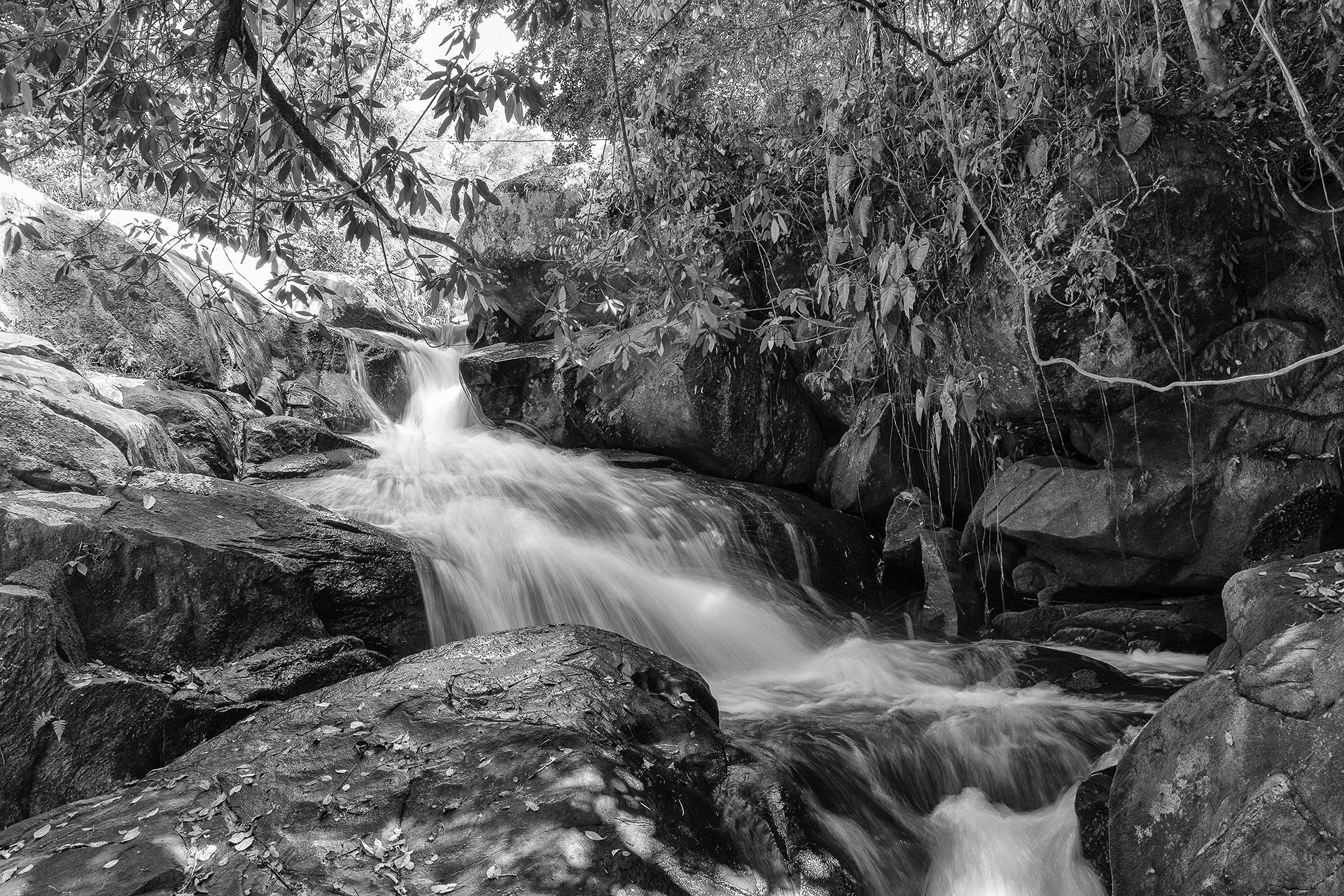 Rio Branco em longa exposição, conectando floresta e montanhas da Serra do Mar.