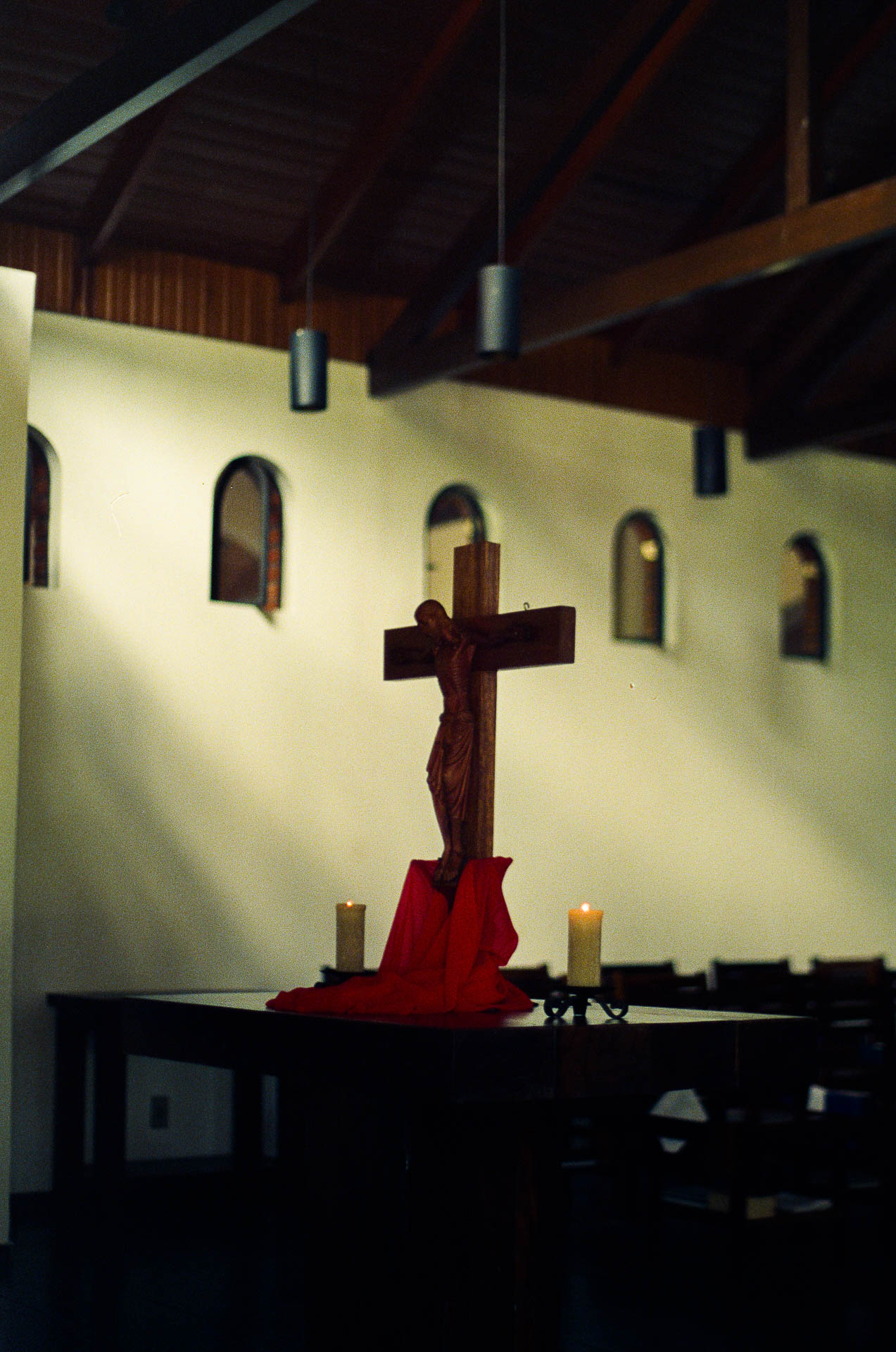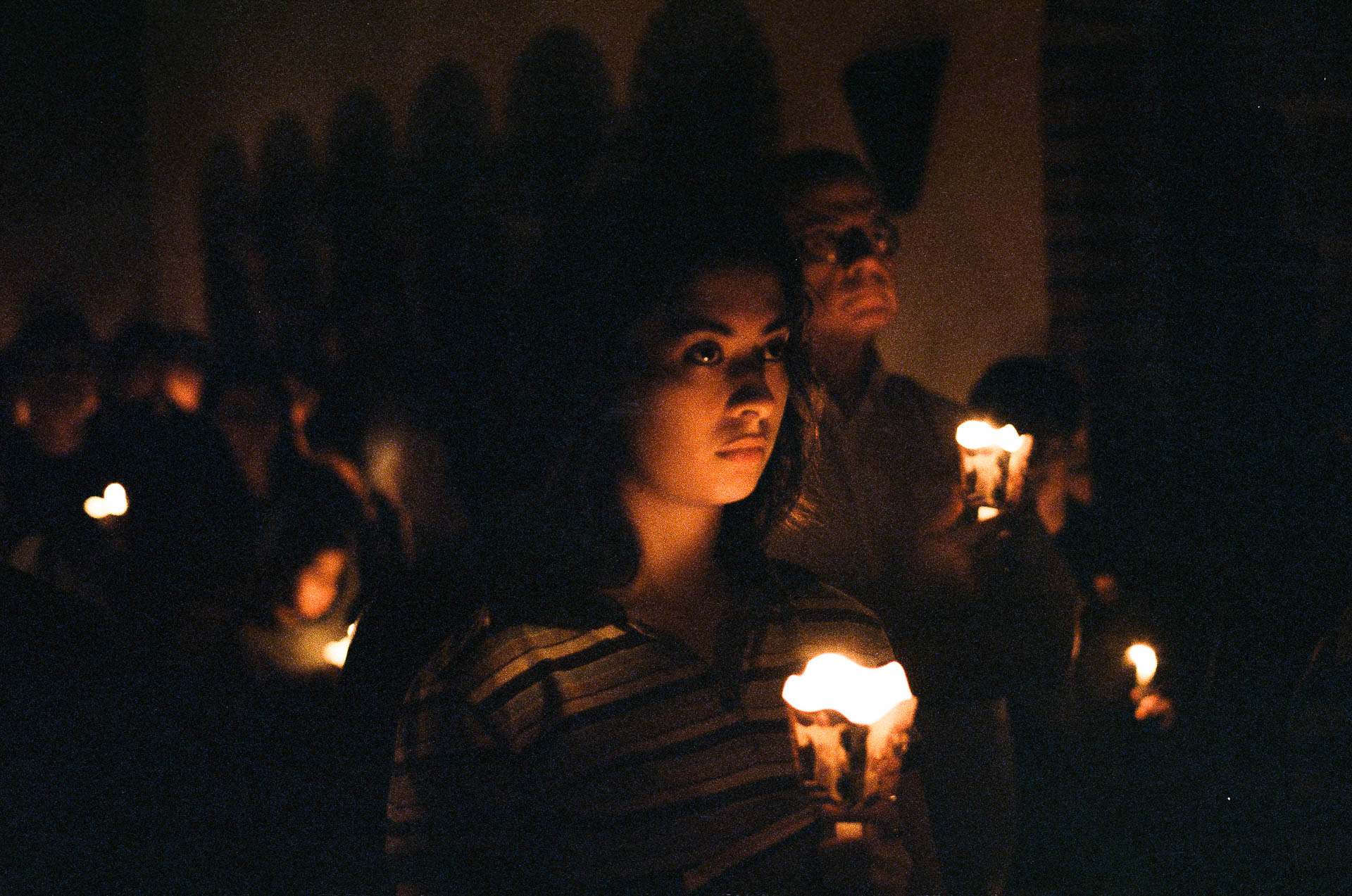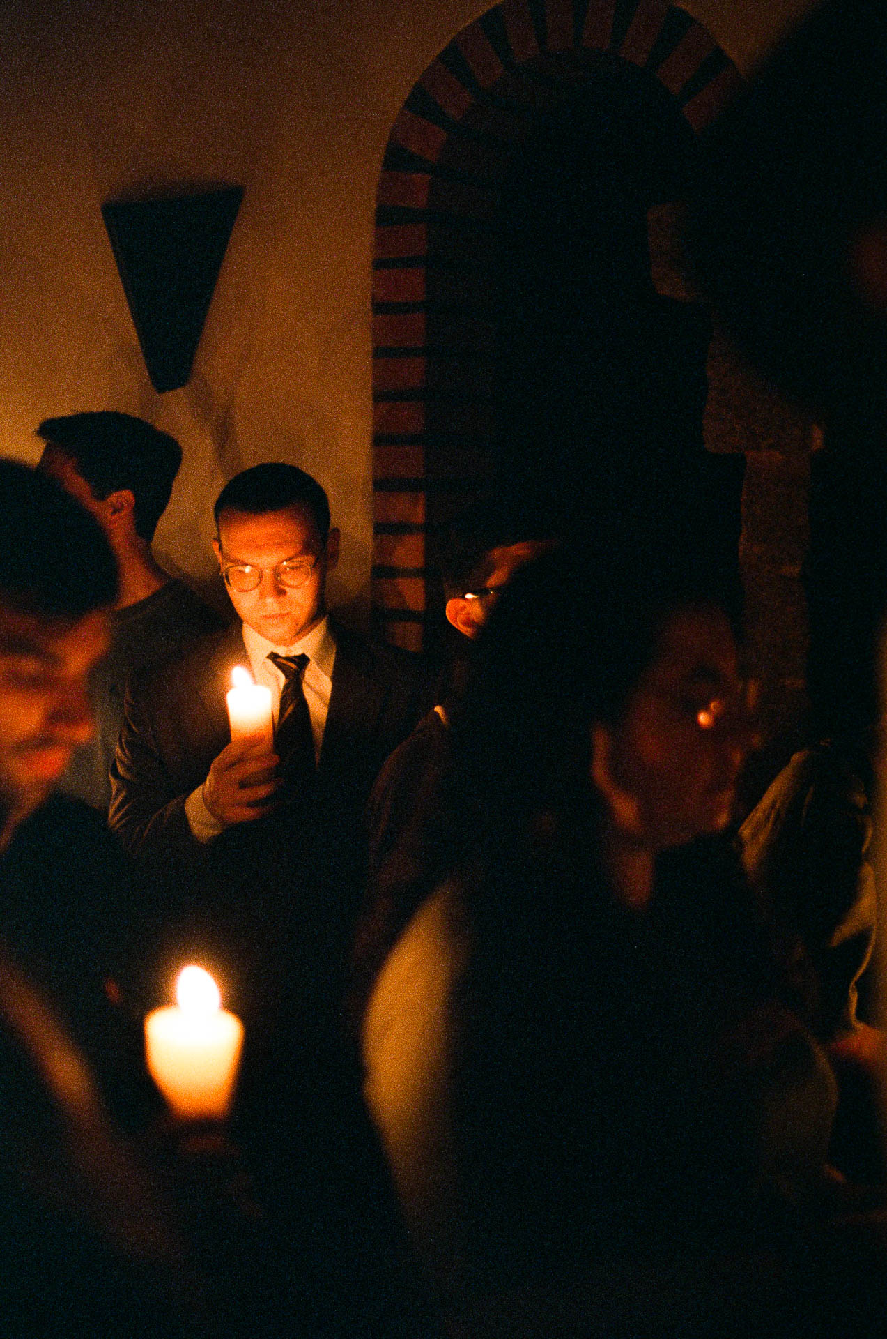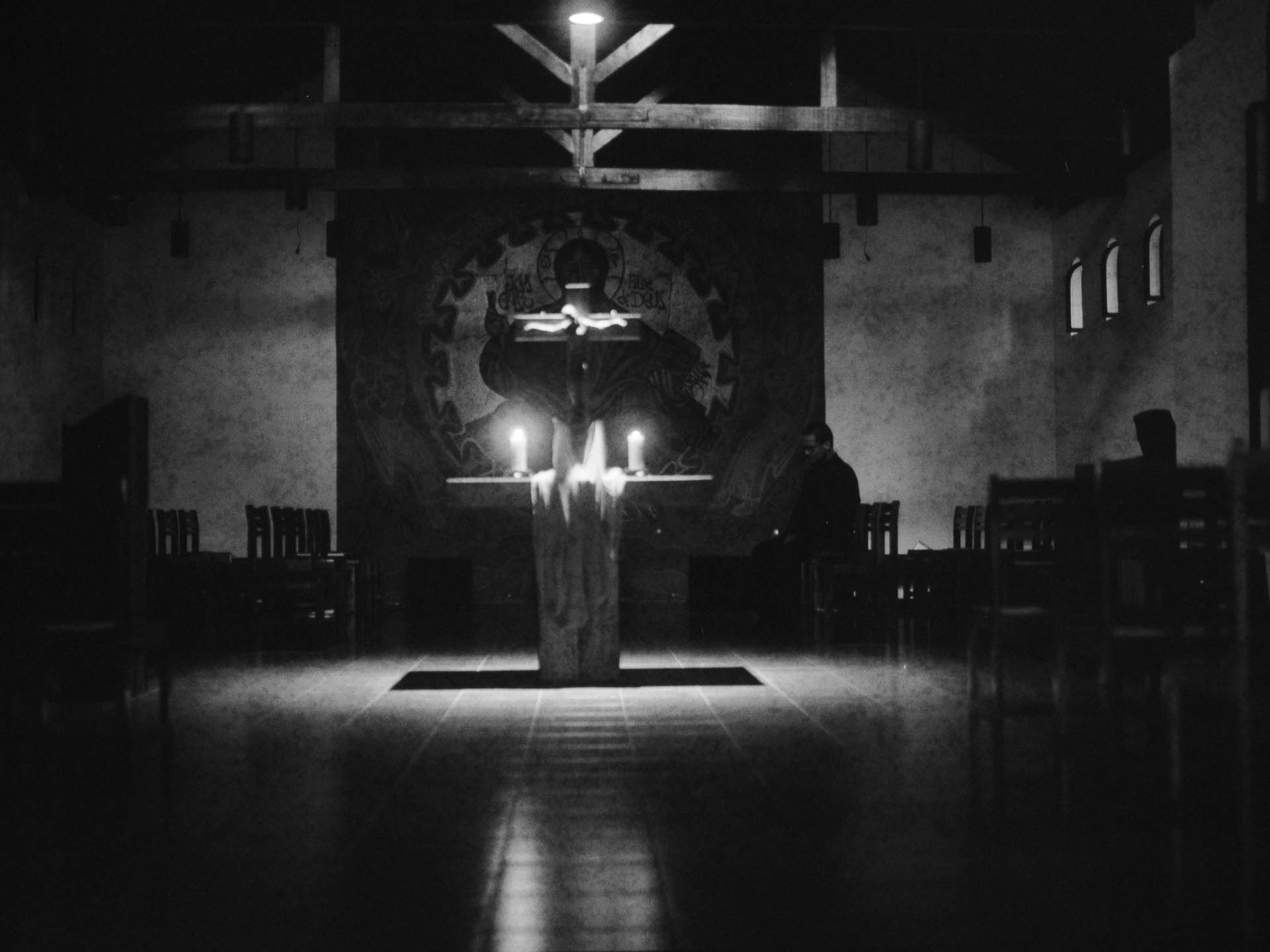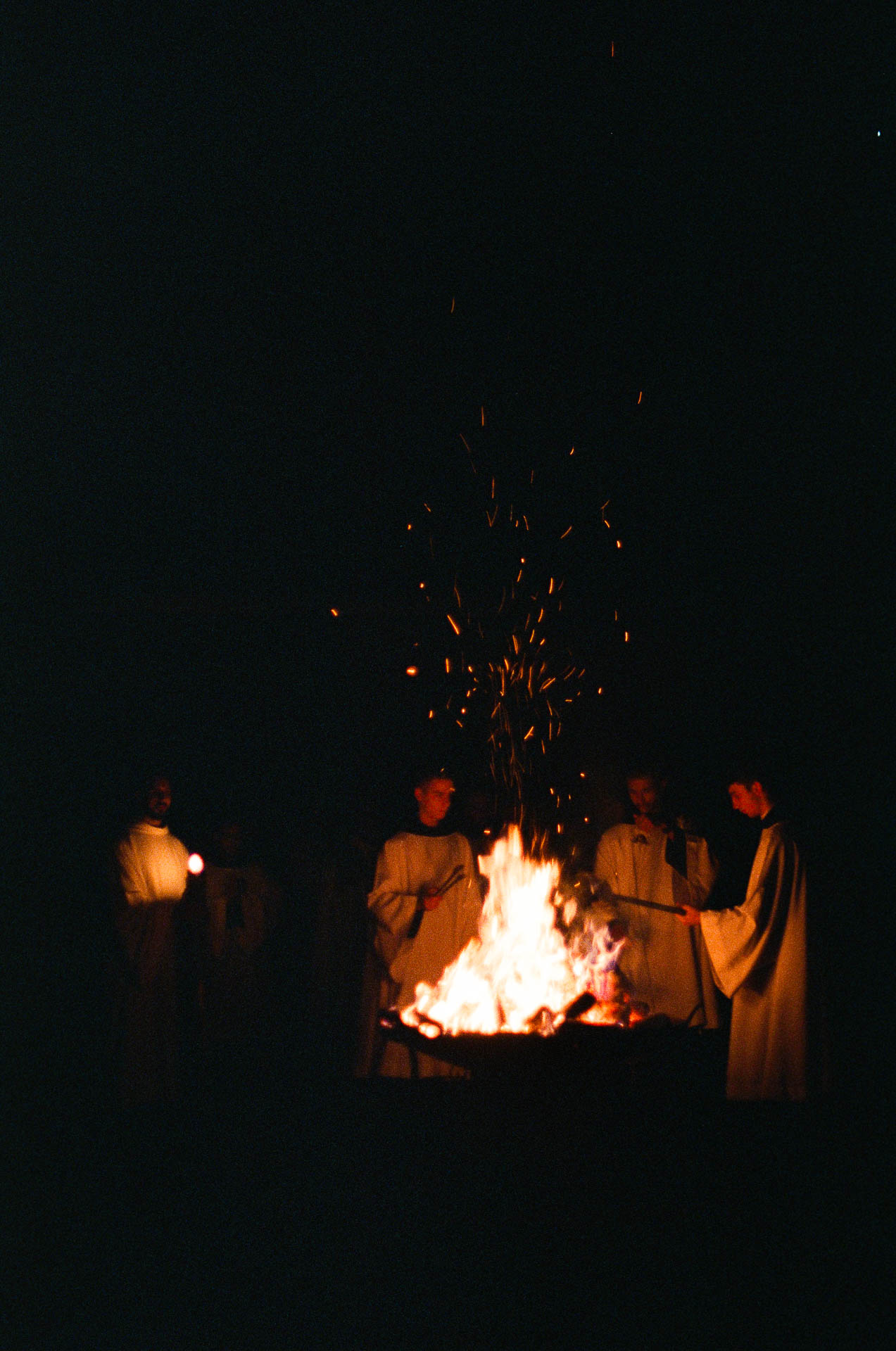 A noite mais longa do calendário litúrgico começa do lado de fora. O fogo acende antes da porta. O rito é uma tecnologia do corpo: ele prescreve onde estar, para onde olhar, o que segurar nas mãos. Estas imagens acompanham o Triduum Sacrum numa comunidade beneditina no interior do Paraná, o arco do entardecer ao fogo, da procissão à assembleia reunida na escuridão. Nem dentro nem fora, mas no lugar onde a câmera consegue permanecer.