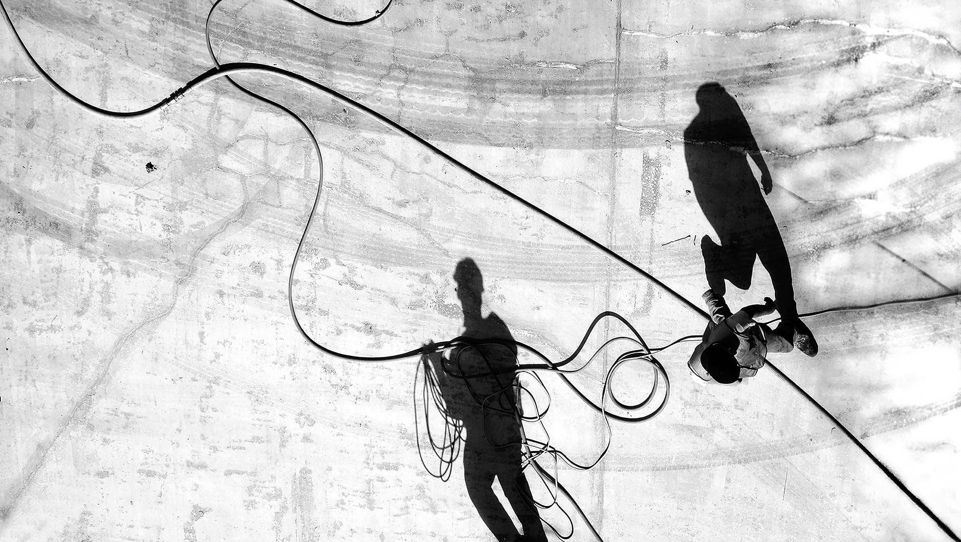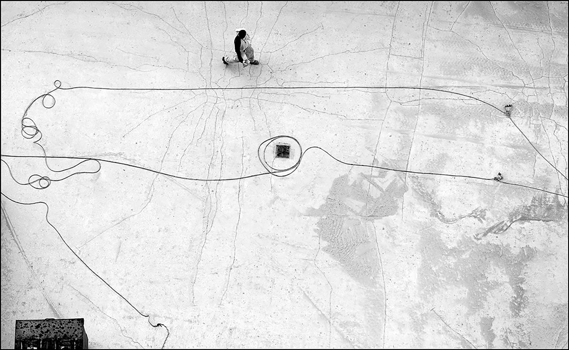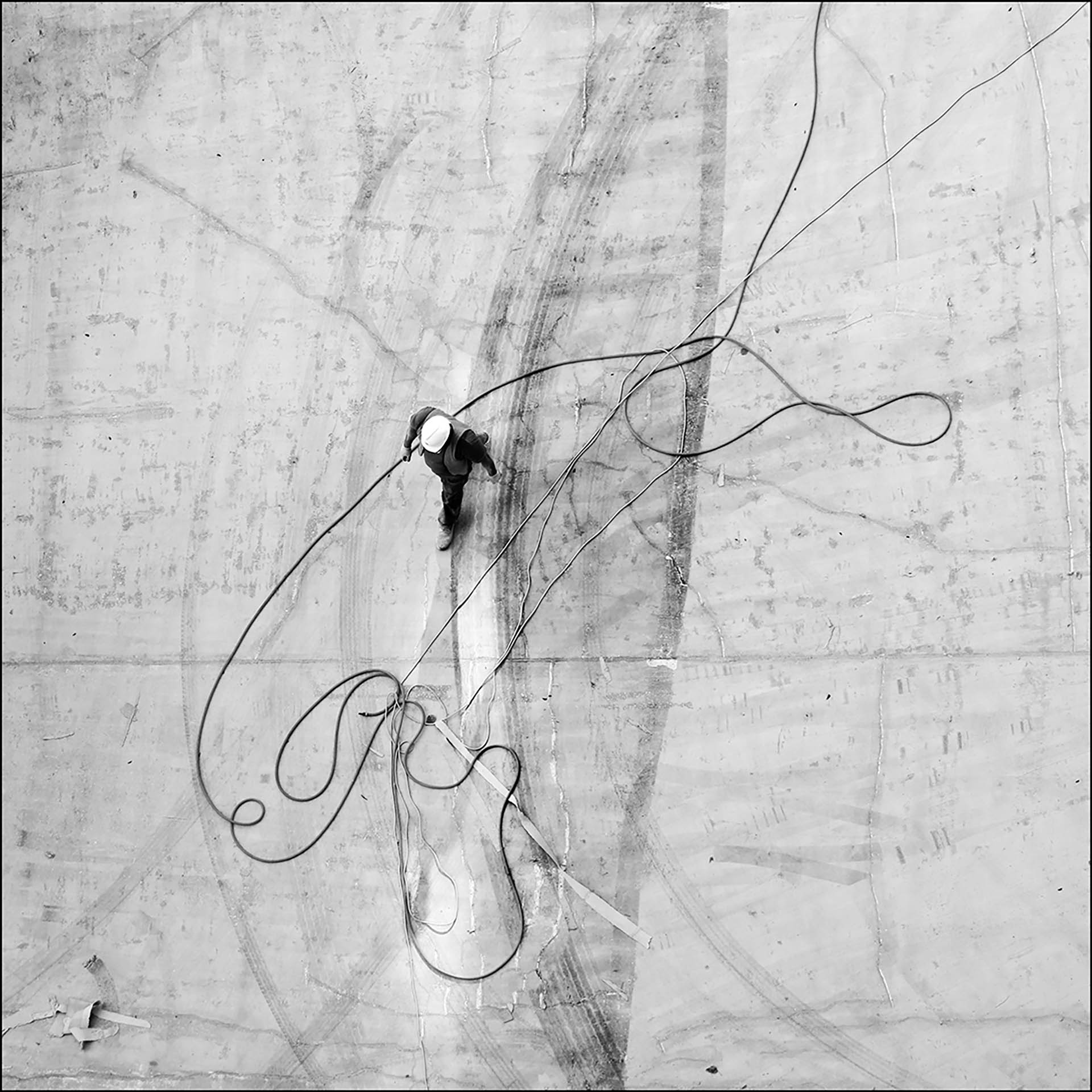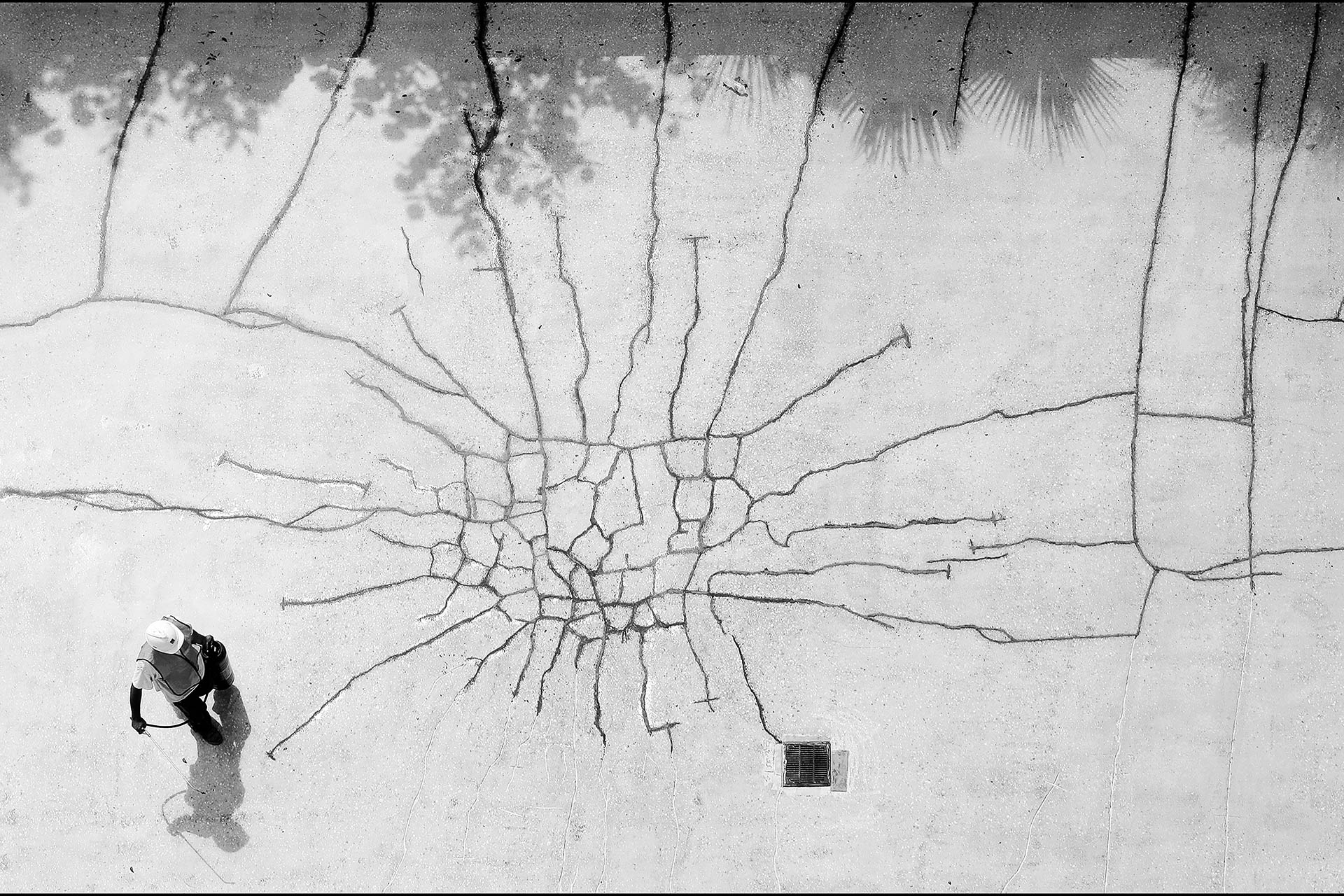 As fotografias formam um ensaio sobre a relação entre controle e espaço. O concreto, o arame, a teia, as grades...
