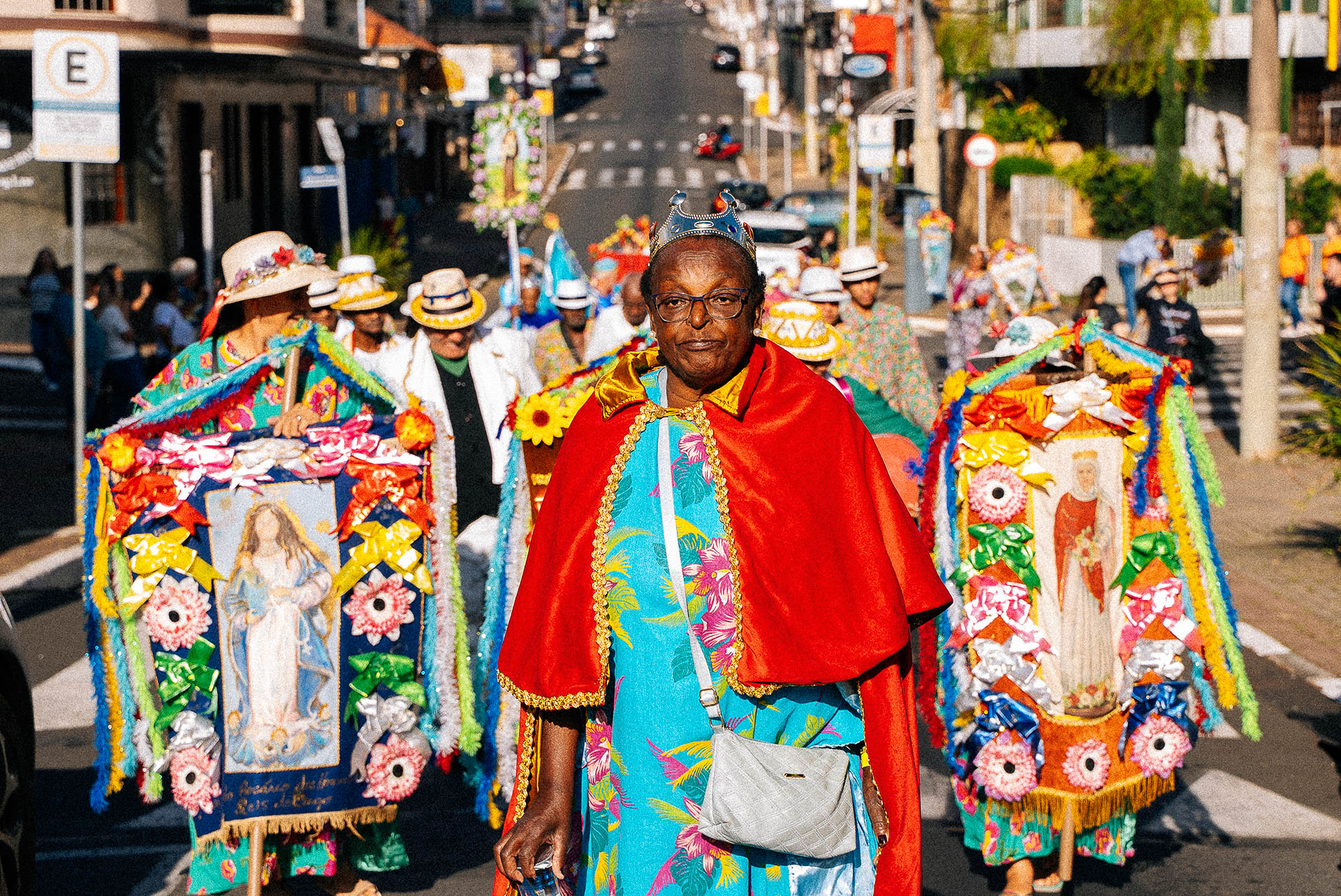 “Reis e Rainhas” percorre o coração da histórica Festa de Maio, o maior e mais antigo evento cultural de Itapira (SP), realizado há mais de 100 anos no dia 13 de maio. Nesse cenário, figuras coroadas ocupam as ruas como guardiãs vivas de uma memória ancestral, uma tradição profundamente enraizada nas celebrações dos ex-escravizados pelo dia da abolição da escravatura.