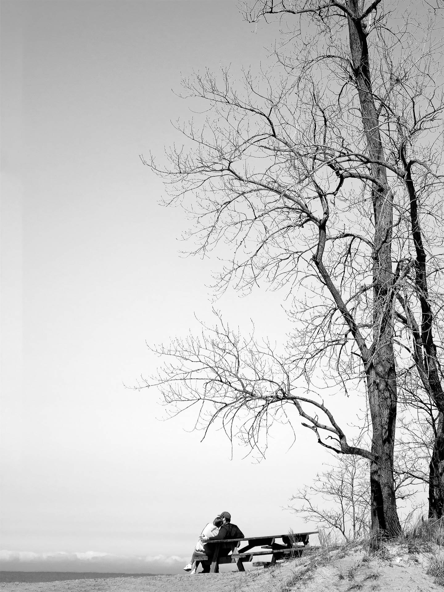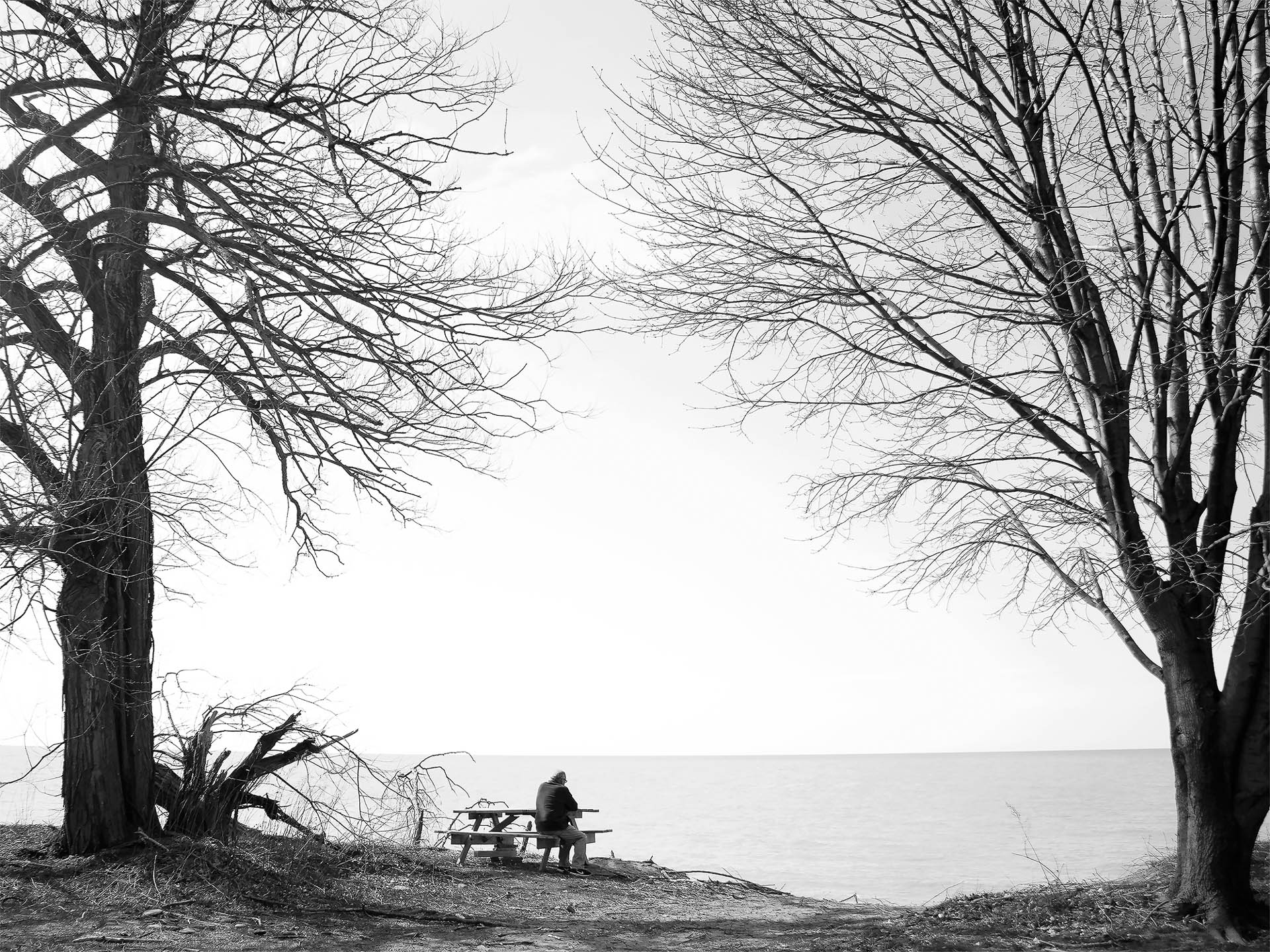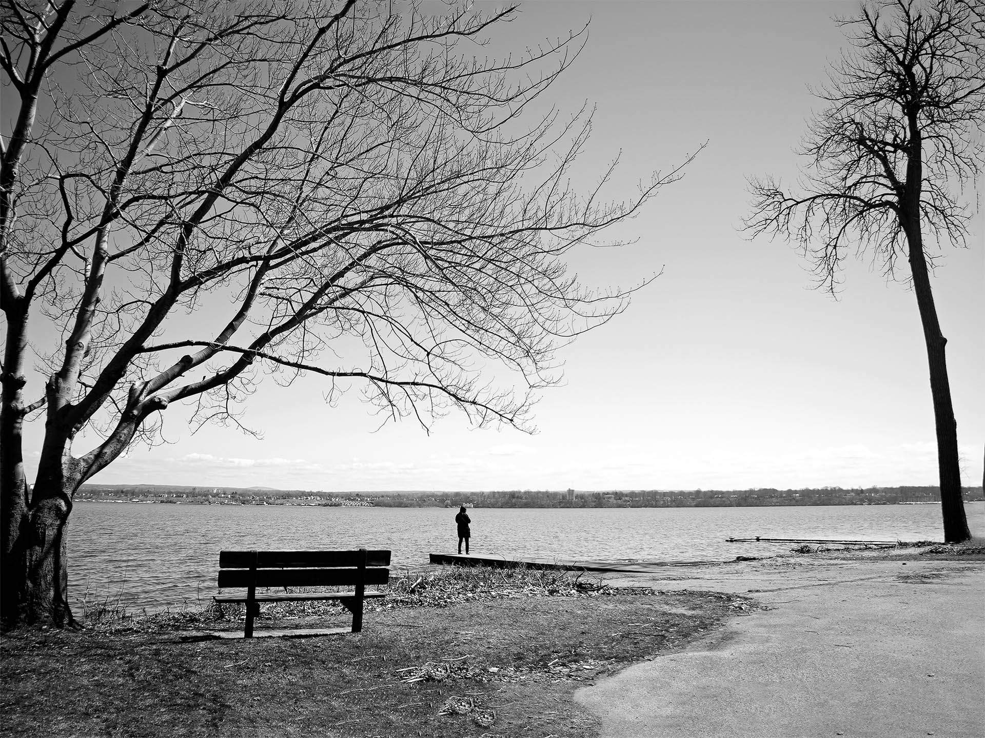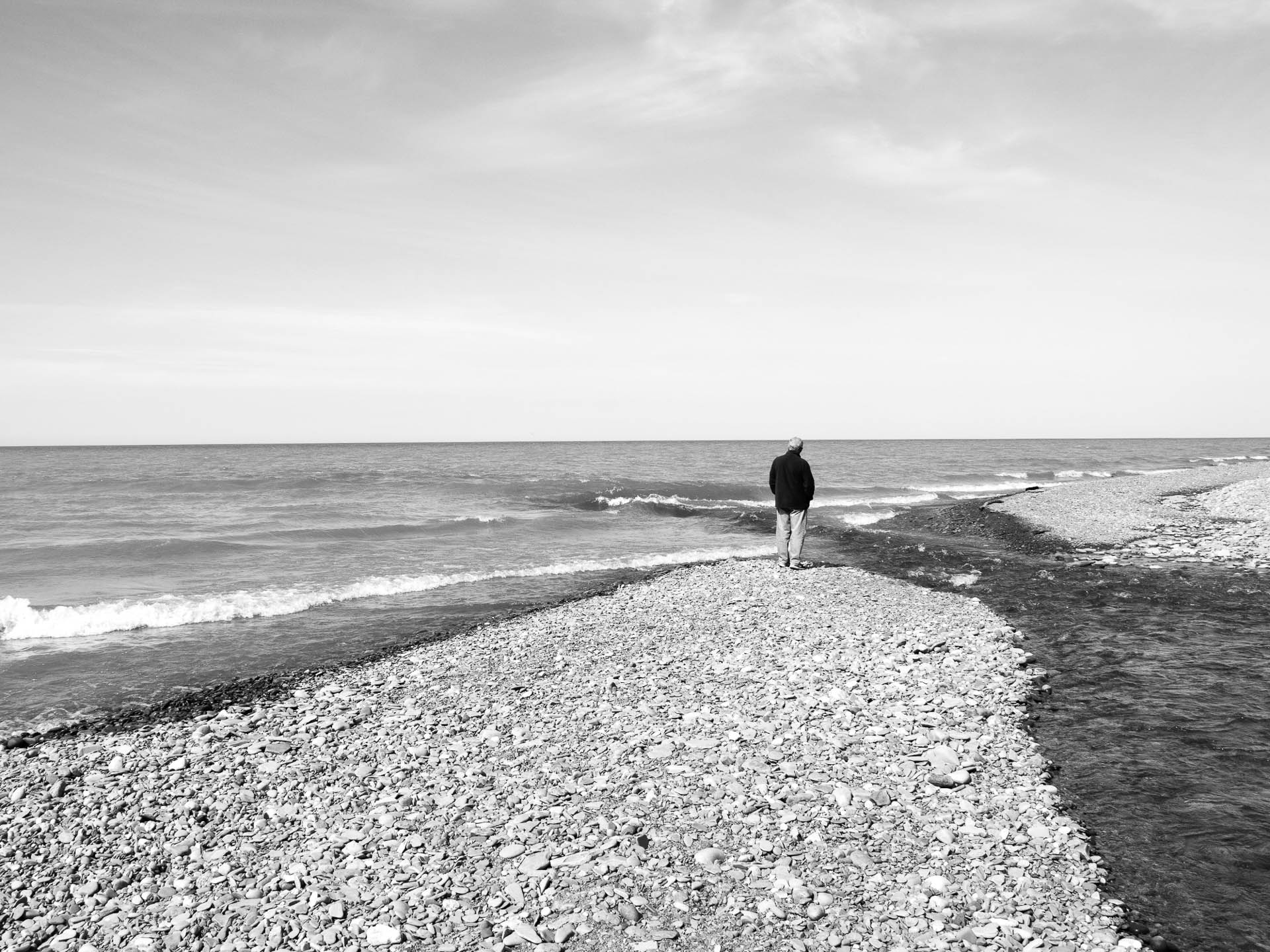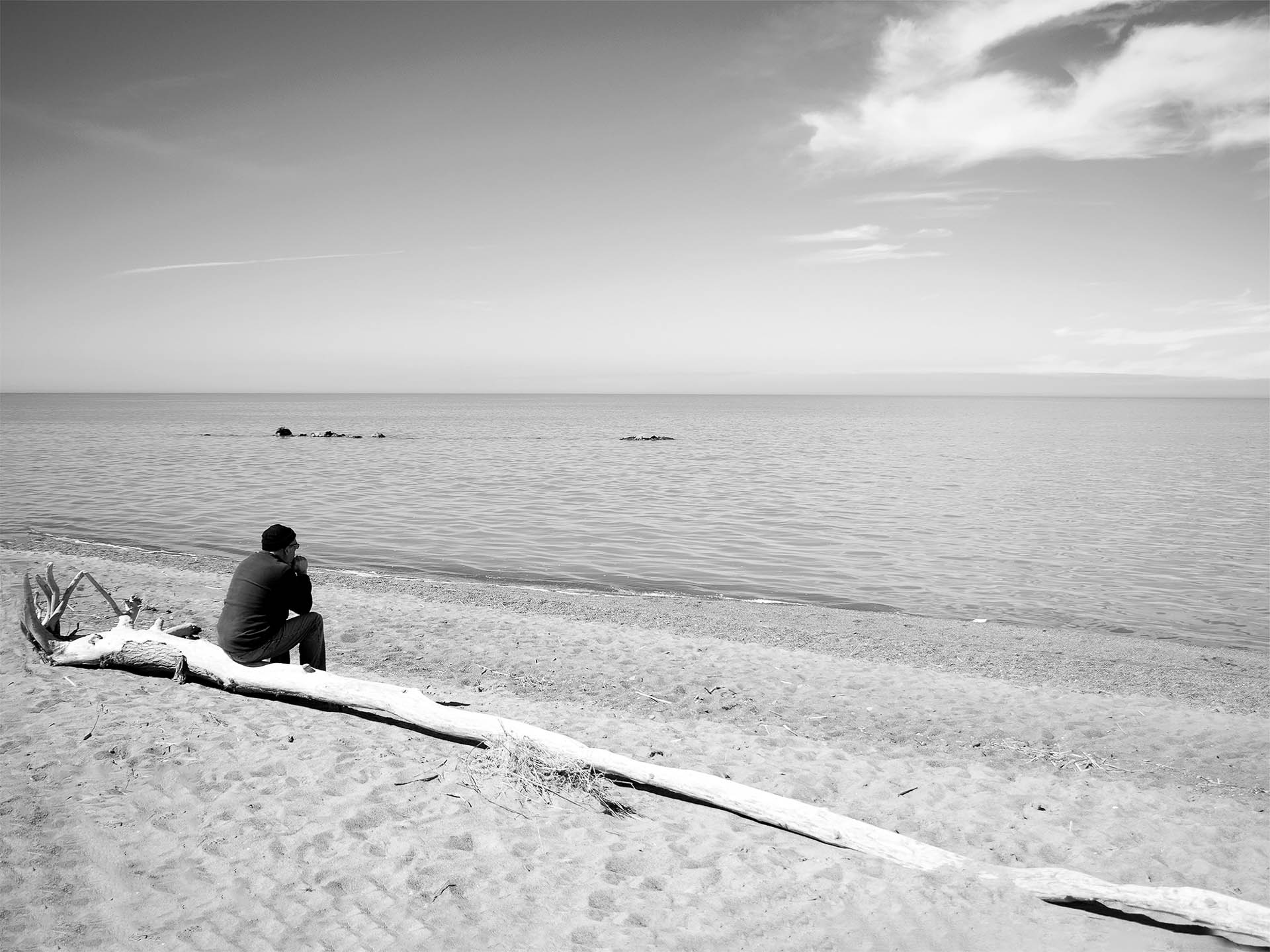 Cada fotografia captura um instante de transição, como se os personagens estivessem à espera de algo, despedindo-se de um momento, de alguém ou, talvez, de uma versão de si mesmos. Bancos vazios, caminhos de areia e reflexos na água adicionam camadas simbólicas ao discurso visual, compondo um poema silencioso onde paisagem e figura humana dialogam de forma sutil. O uso do preto e branco intensifica a atmosfera introspectiva e melancólica, removendo distrações cromáticas e enfatizando o jogo de luz e sombra, gerando nuances sutis de emoção. Espaços vazios, céus amplos e horizontes distantes sugerem um isolamento que transcende o físico, alcançando dimensões emocionais. A presença constante da água torna-se metáfora do fluxo da vida—do que chega e do que parte—sinalizando a passagem das estações e as transformações internas.