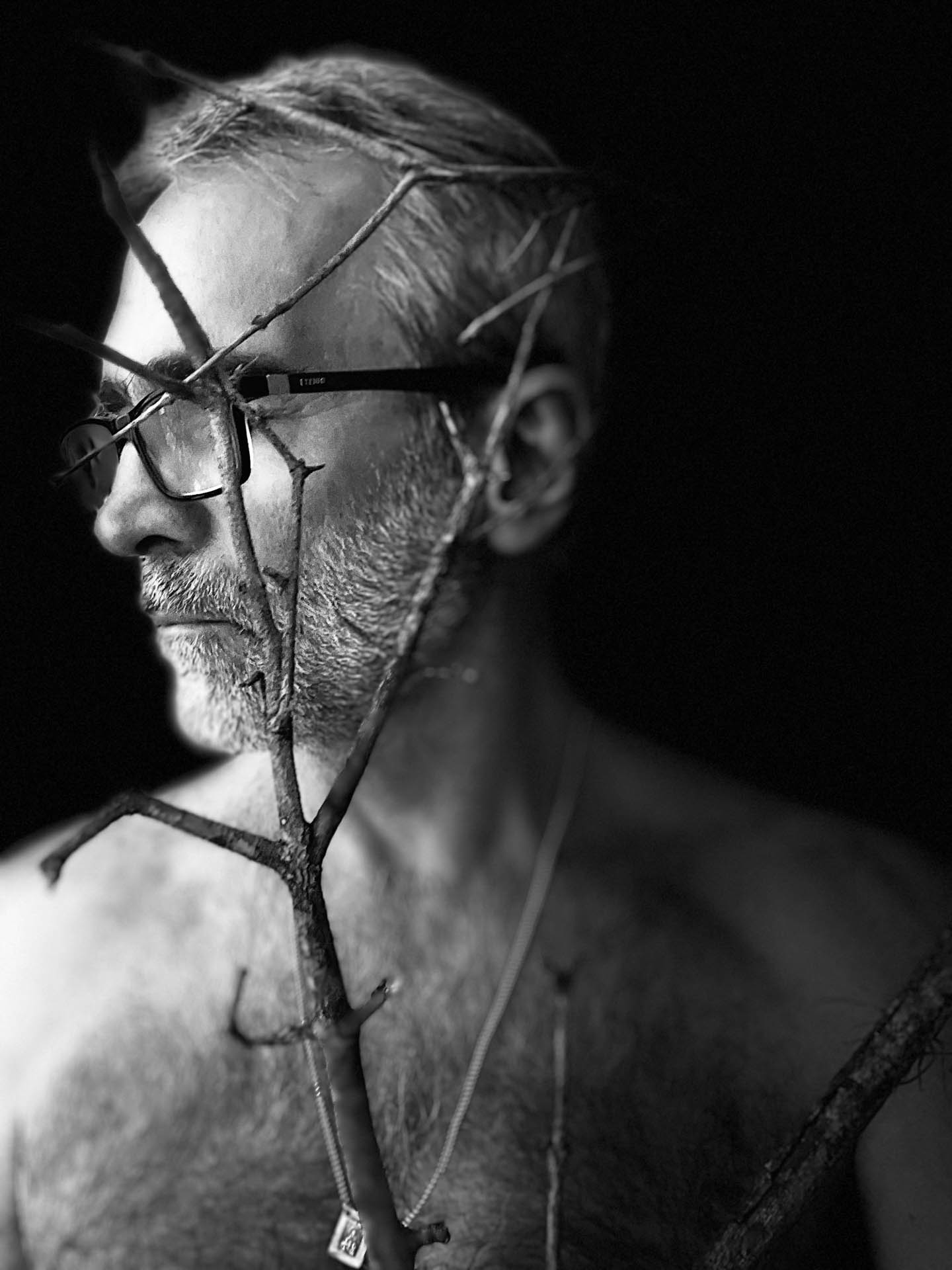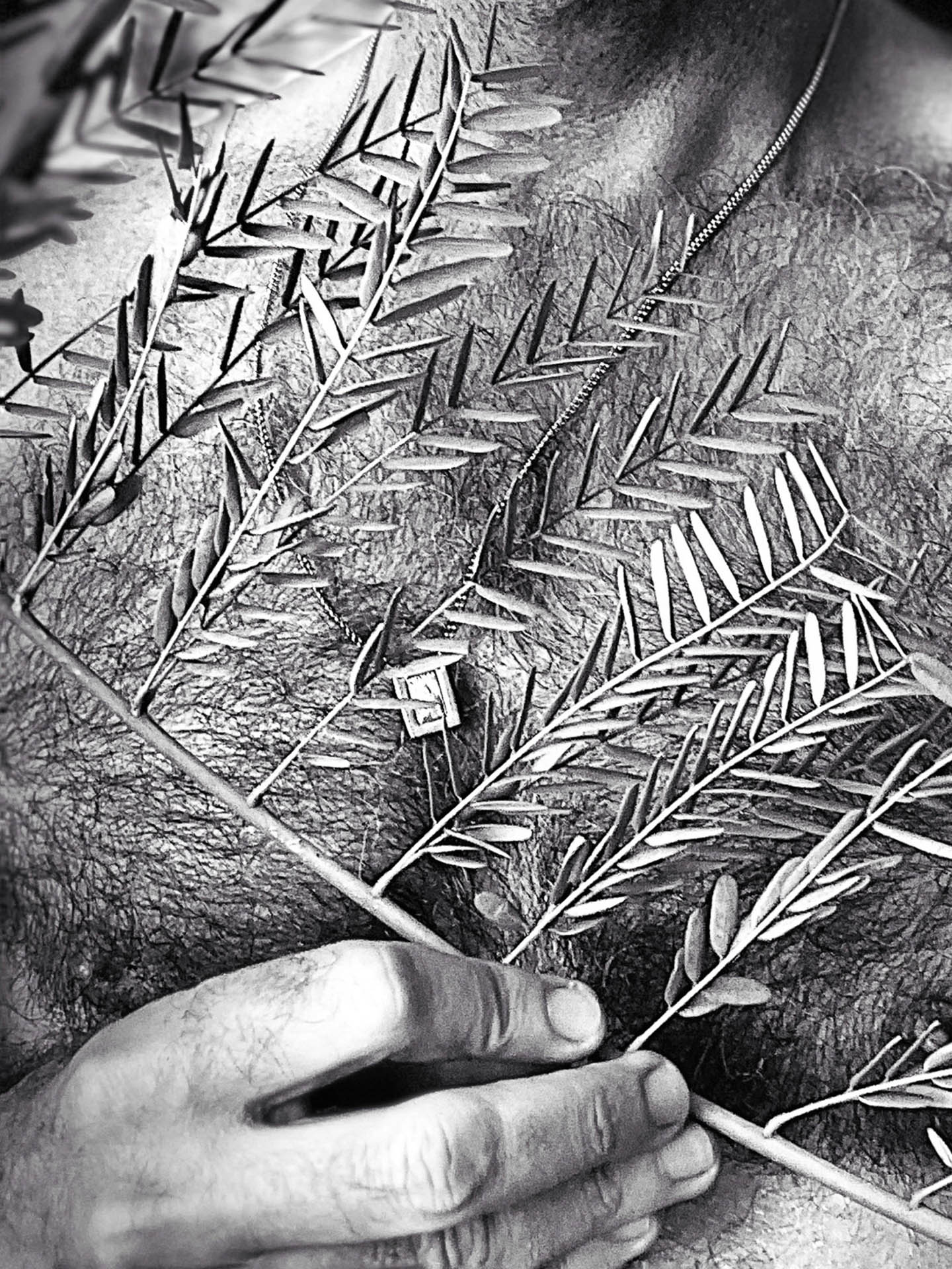 Ao tocar a casca, ao deixar que os ramos desenhassem a pele, procurei uma forma decosturar aquilo que a ruptura tinha aberto.