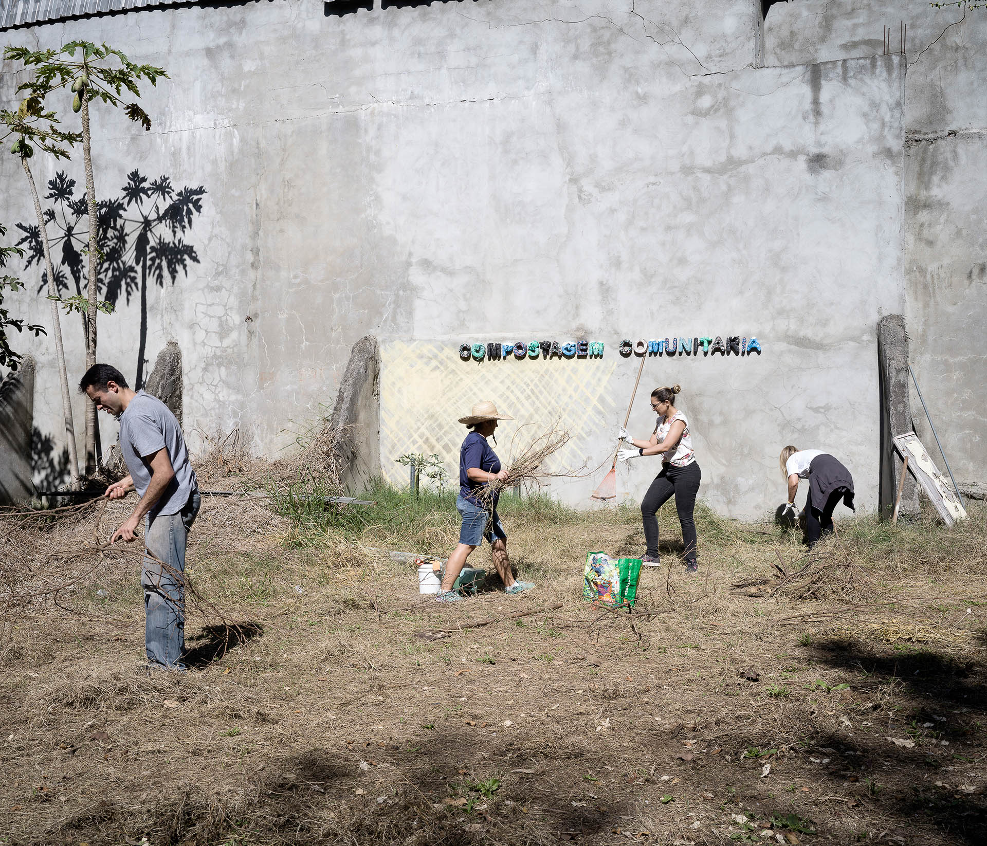 People belonging to the association Missão Ambiental (environment mission) clean and take care of their space. Missão Ambiental is an association from Ipiranga neighborhood that converted a former parking lot and Fiat cars deposit in a small island of Atlantic Forest in the middle of the very cemented neighborhood.