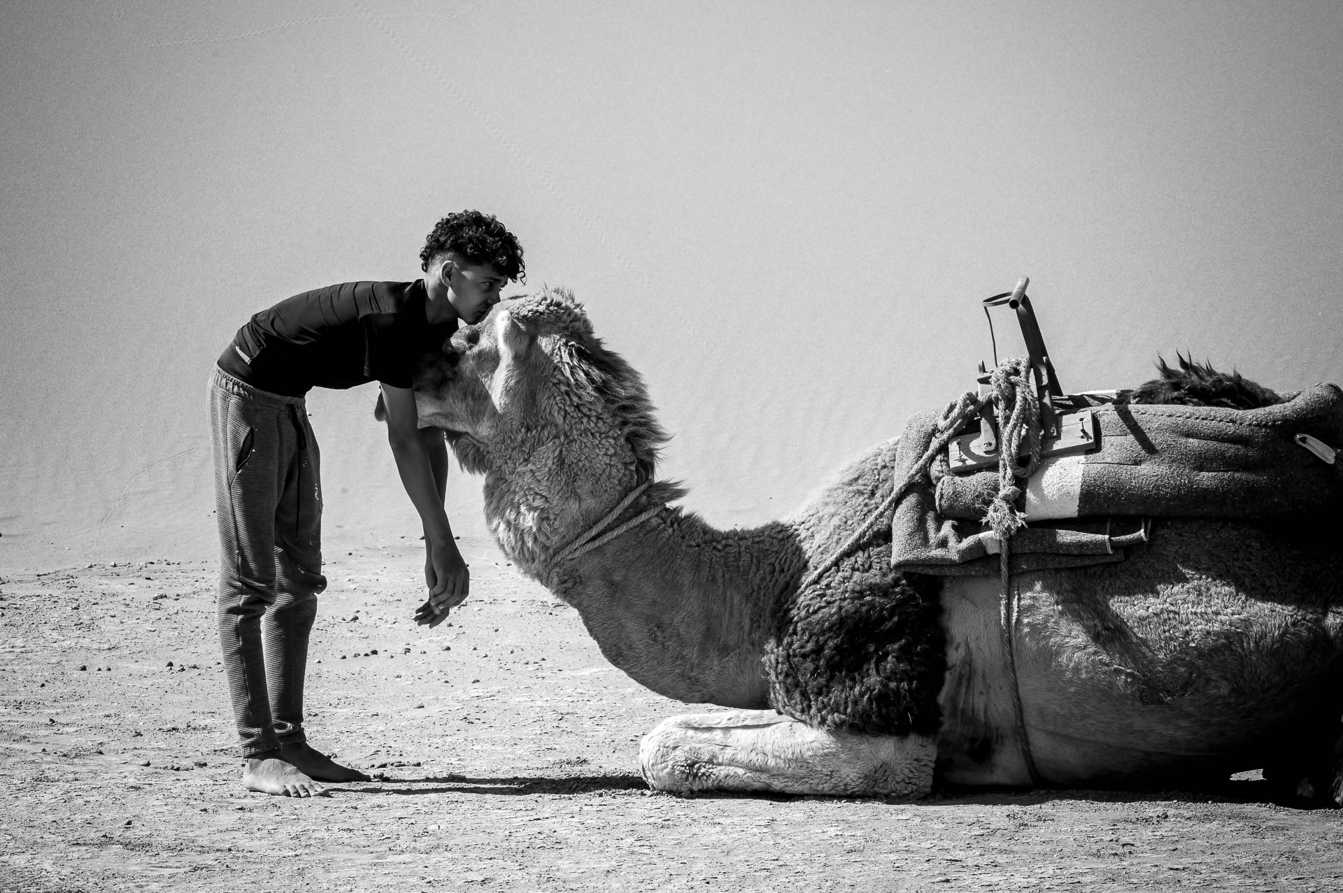 The Guardians of the Desert is an ongoing documentary project focused on the Bedouin communities of the Sahara, whose ancestral way of life faces the threat of cultural homogenization. Moving beyond exoticism, this work explores the silent resistance of a people living in harmony with the essential. Central to the series is the sacred, intuitive bond between the Bedouin and the dromedary—a relationship that defines the desert’s soul. Through intimate observation, the project serves as a visual tribute to communal wisdom and a call to reconnect with the natural world.