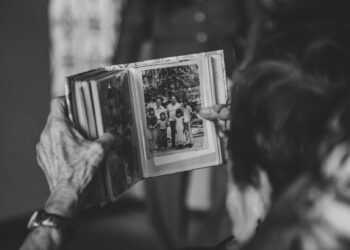 Duas imagens que resistem: a família congelada na fotografia e os olhos que, através do vidro dos óculos, a mantém...