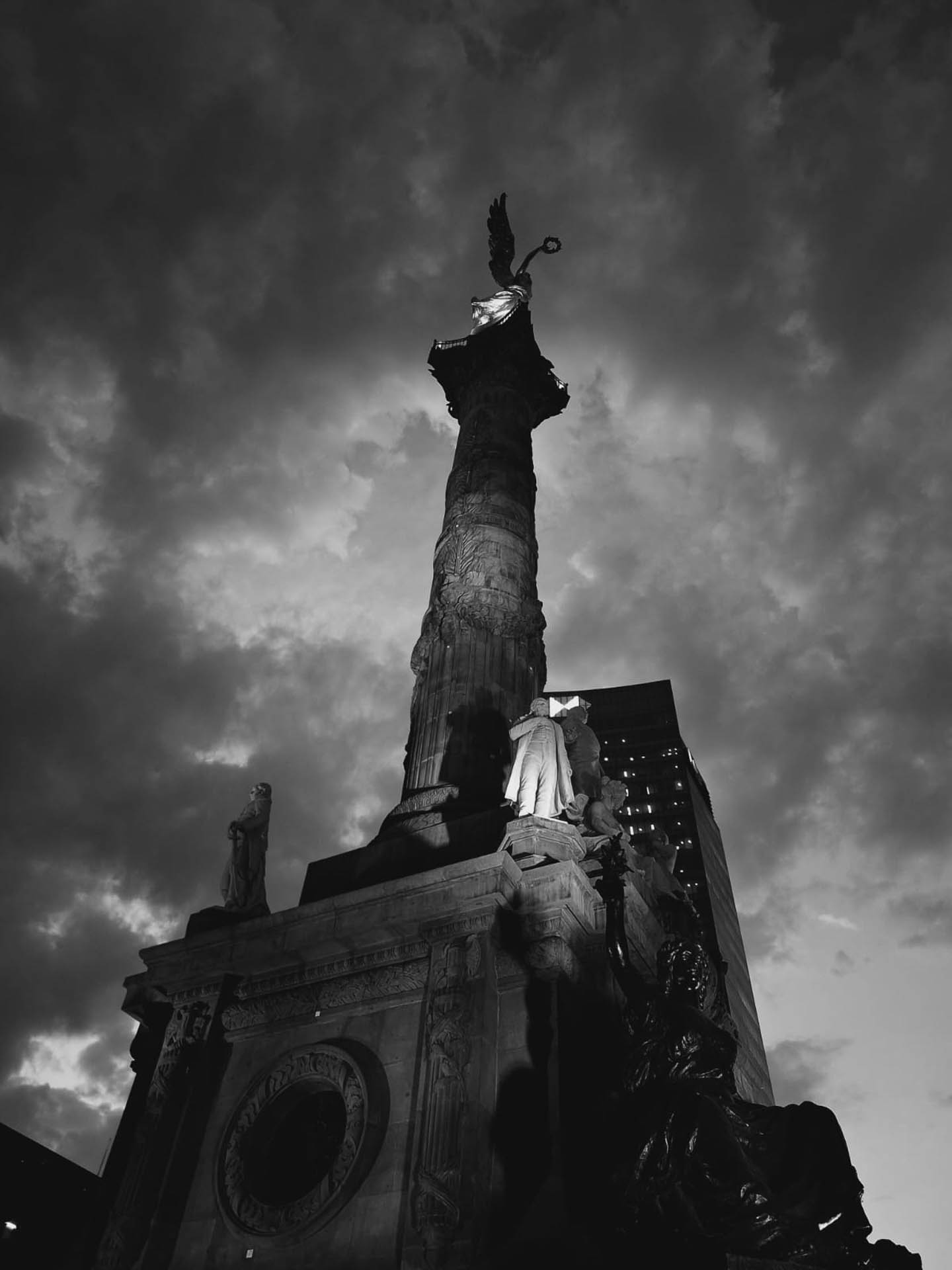Atardecer en el lugar más céntrico de la ciudad el ángel de la independencia en tarde lluviosa.