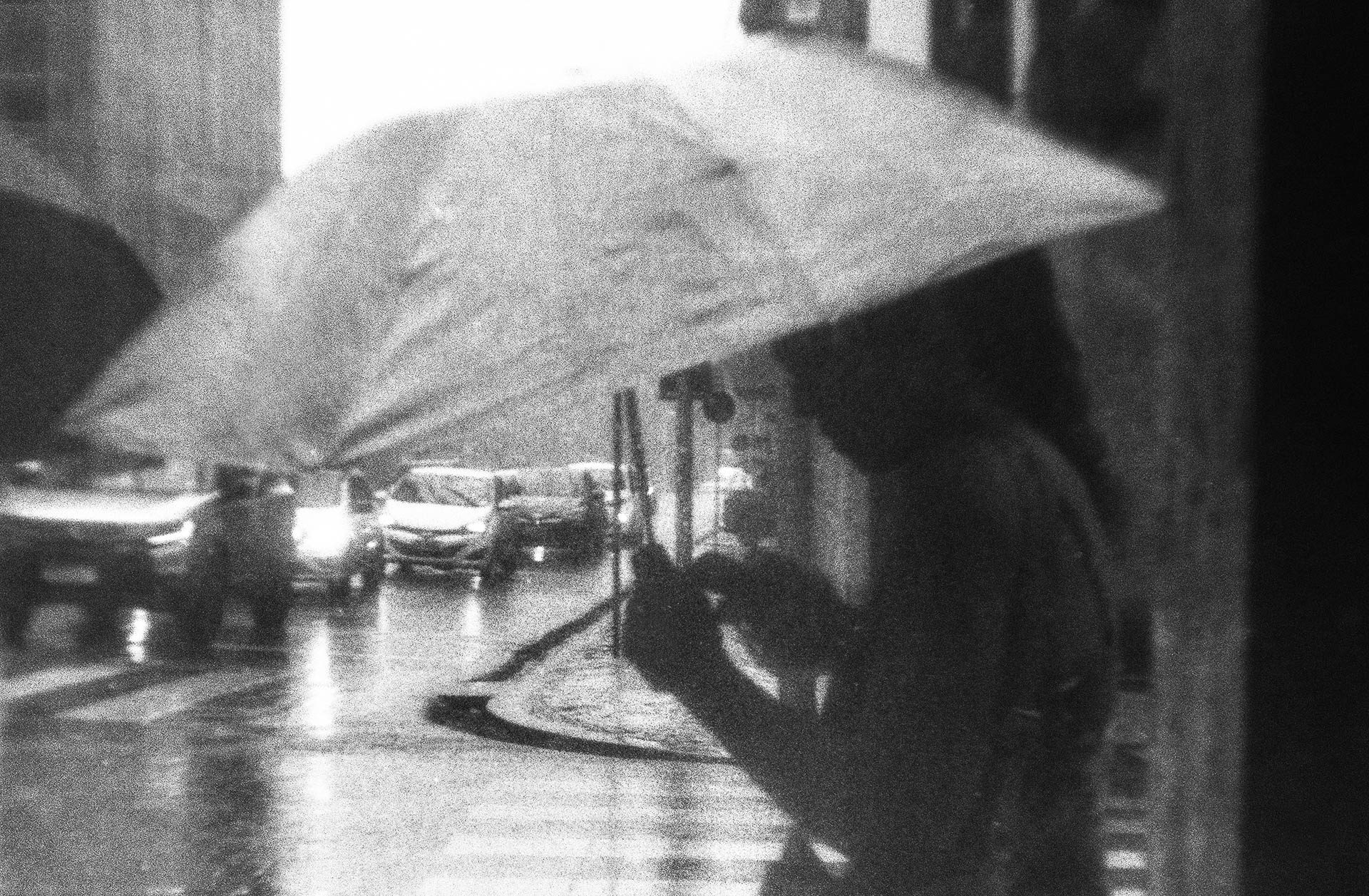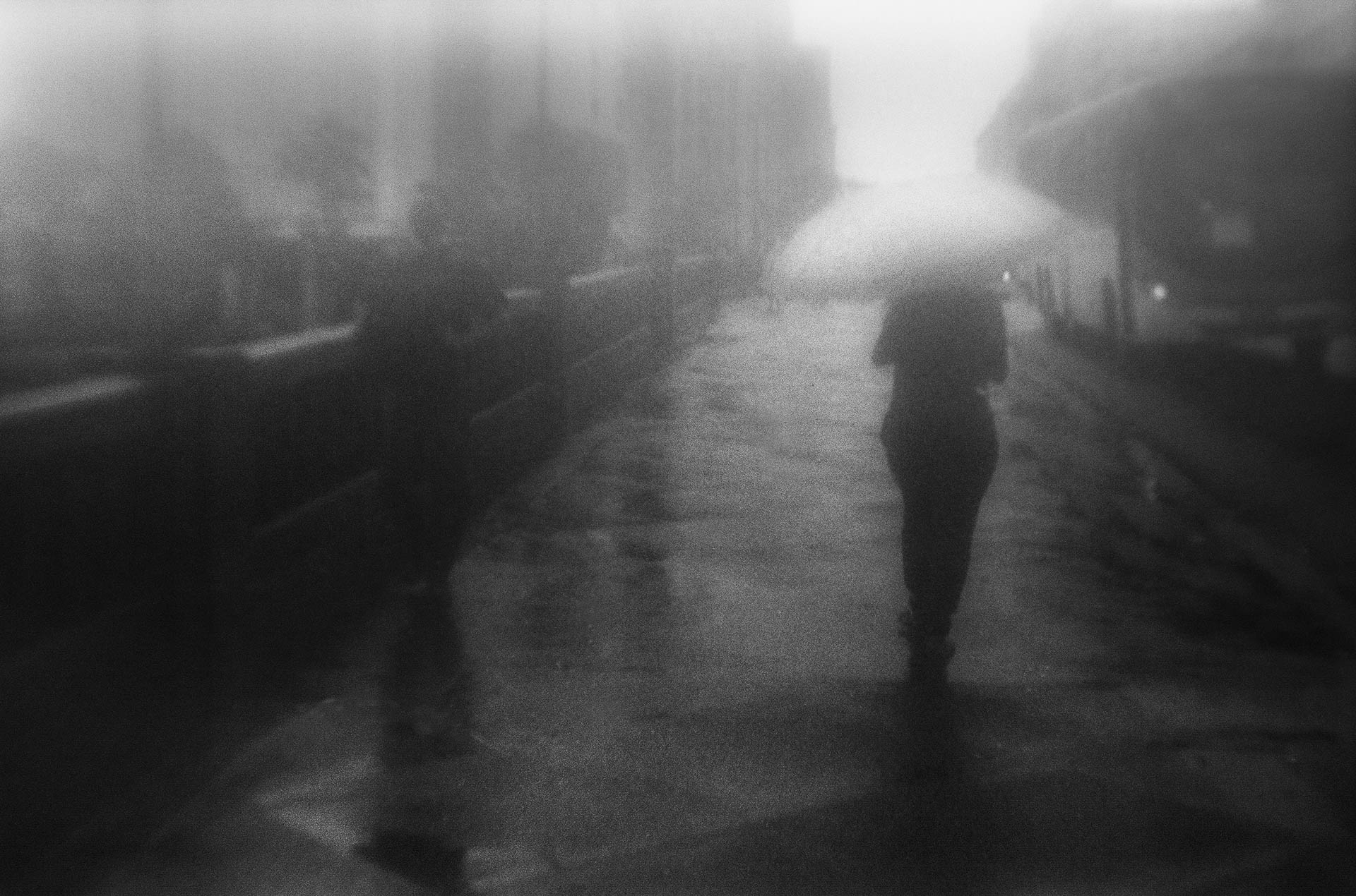 Bruma foi produzido no centro do Recife durante o inverno, período em que a presença da chuva altera a percepção do espaço urbano. O ensaio nasce dessas caminhadas, em que a cidade parece perder sua forma habitual e as figuras aparecem como sombras em trânsito.