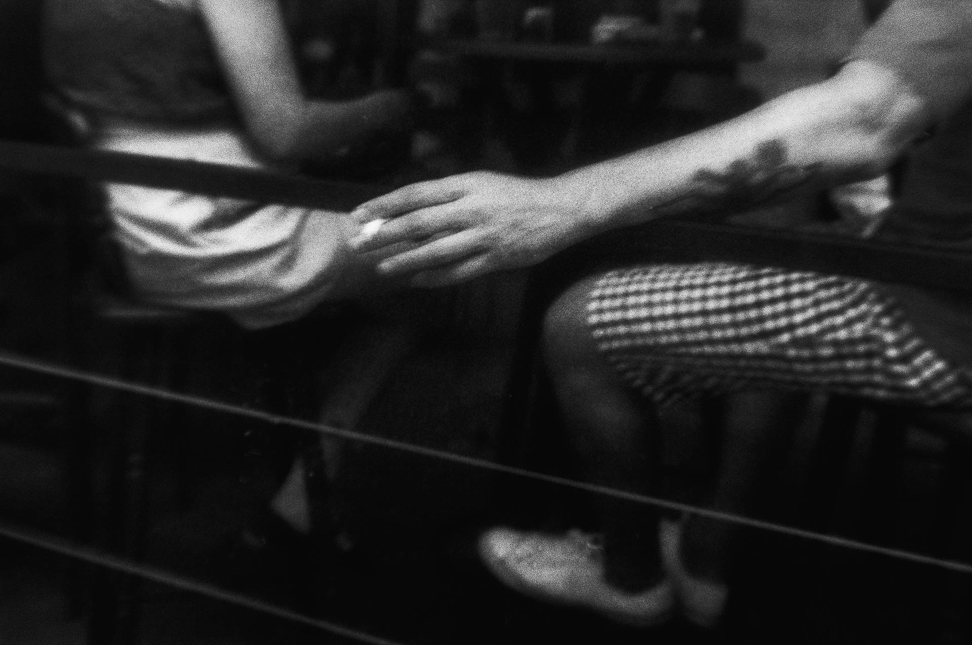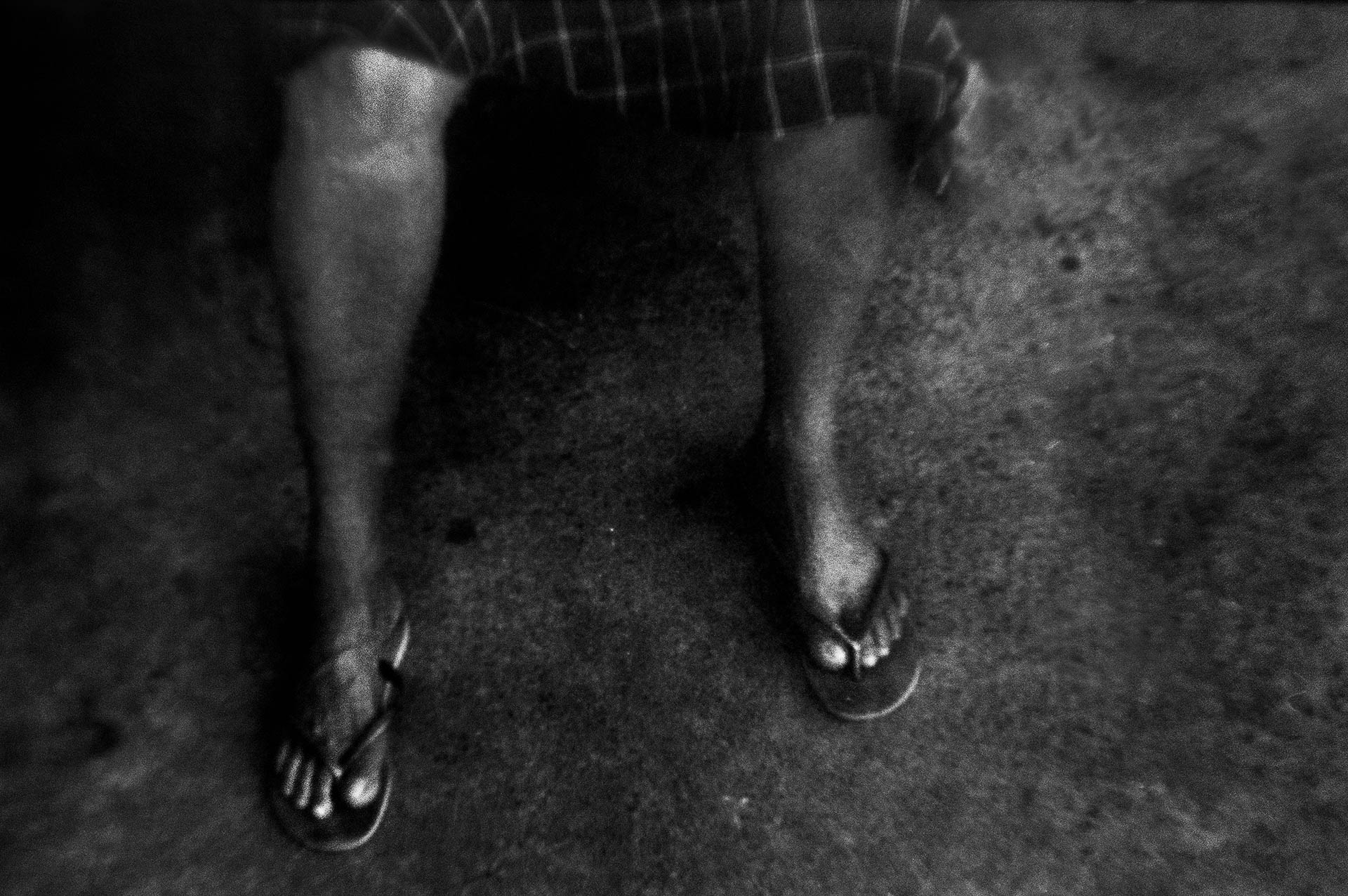 O ensaio foi feito em filme 35mm e revelado em laboratório próprio. A opção pela sobrevelação dos negativos foi essencial para criar essa atmosfera: a redução de densidade acentua o grão, endurece as texturas e aprofunda as sombras, aproximando algumas imagens de um desenho em carvão. Essa escolha técnica faz parte da narrativa e ajuda a materializar a bruma que envolve as cenas, reforçando a tensão entre o real e o fantasmagórico.