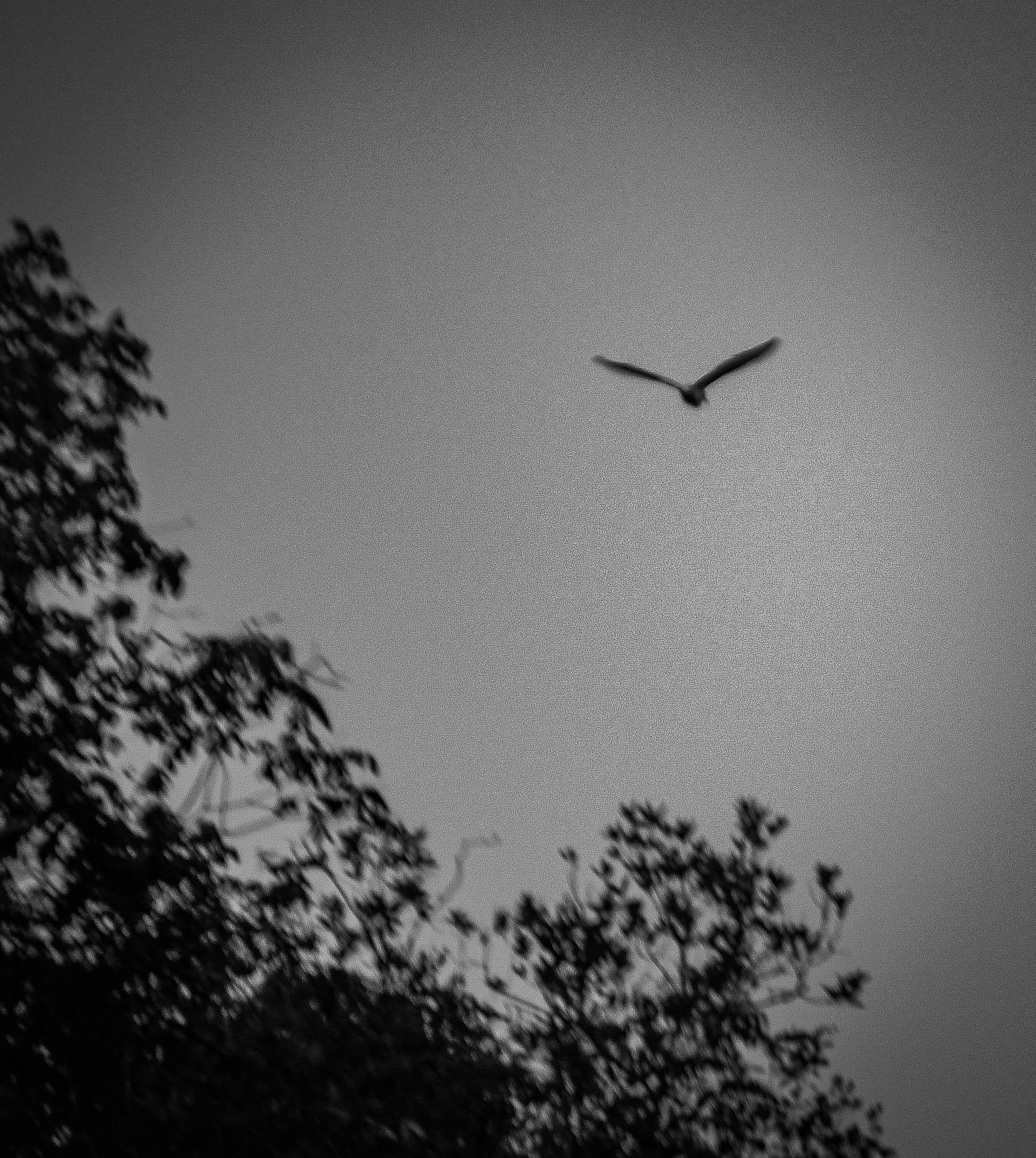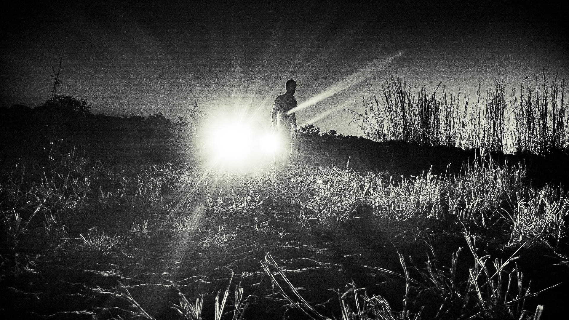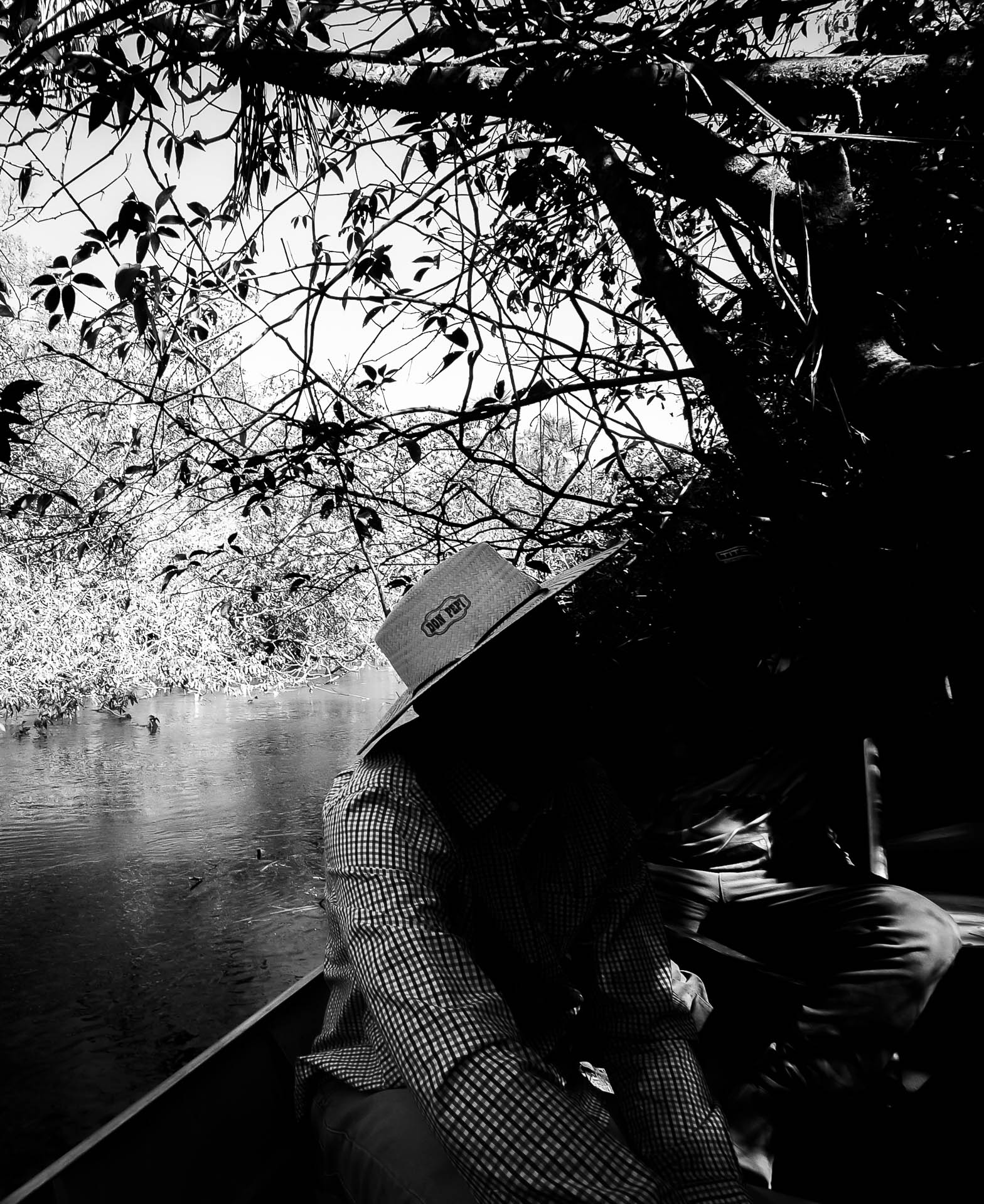 Dois homens saem de uma fazenda nas cercanias do Parque Indígena do Xingu. São seus donos? Ou dois trabalhadores? Embarcam o rio em um bote motorizado. Podem ser pai e filho. Ou dois desconhecidos. Percorrem incessantemente rio e mata à procura de algo para caçar. Pode ser uma onça. Ou um pássaro a voar. Essa série de fotografias em preto e branco busca retratar essas dicotomias ambulantes e caminhantes. Aqui, o contraste atua como um fio condutor a essa existência onde tudo é dúbio e nada é concreto, e o branco absoluto e opressivo em sua superexposição só é definido e limitado pelo preto que suprime os rostos e expressões desses homens que nada são além de silhuetas em sua jornada rumo a algo.