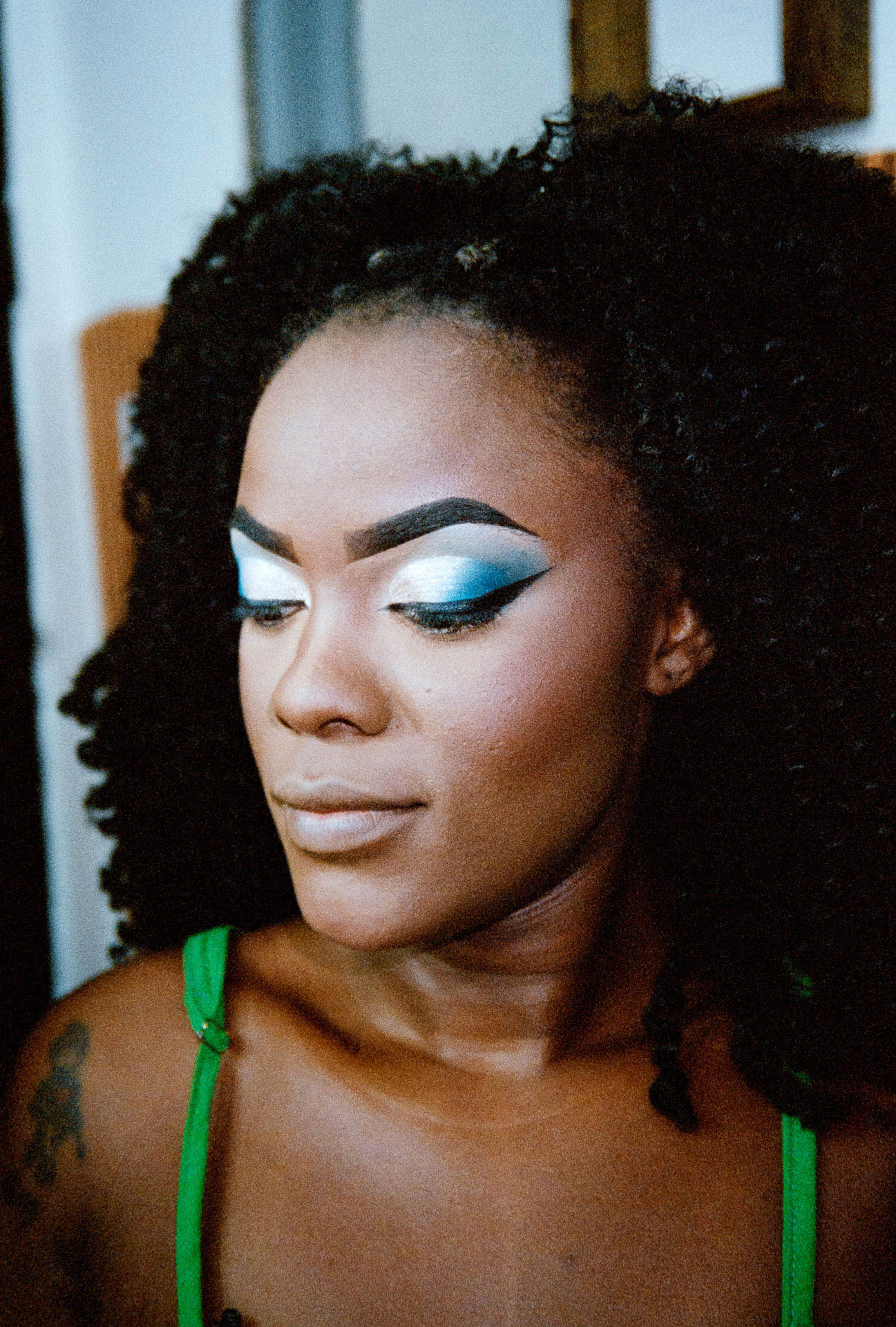 Nathanny vai todas as semanas ao salão de maquiagem de Luisa, localizado não muito longe de sua casa, na Zona Norte do Rio de Janeiro. Sua maquiagem azul apresenta as cores emblemáticas de sua escola de samba, Unidos da Tijuca: o amarelo e o azul.
