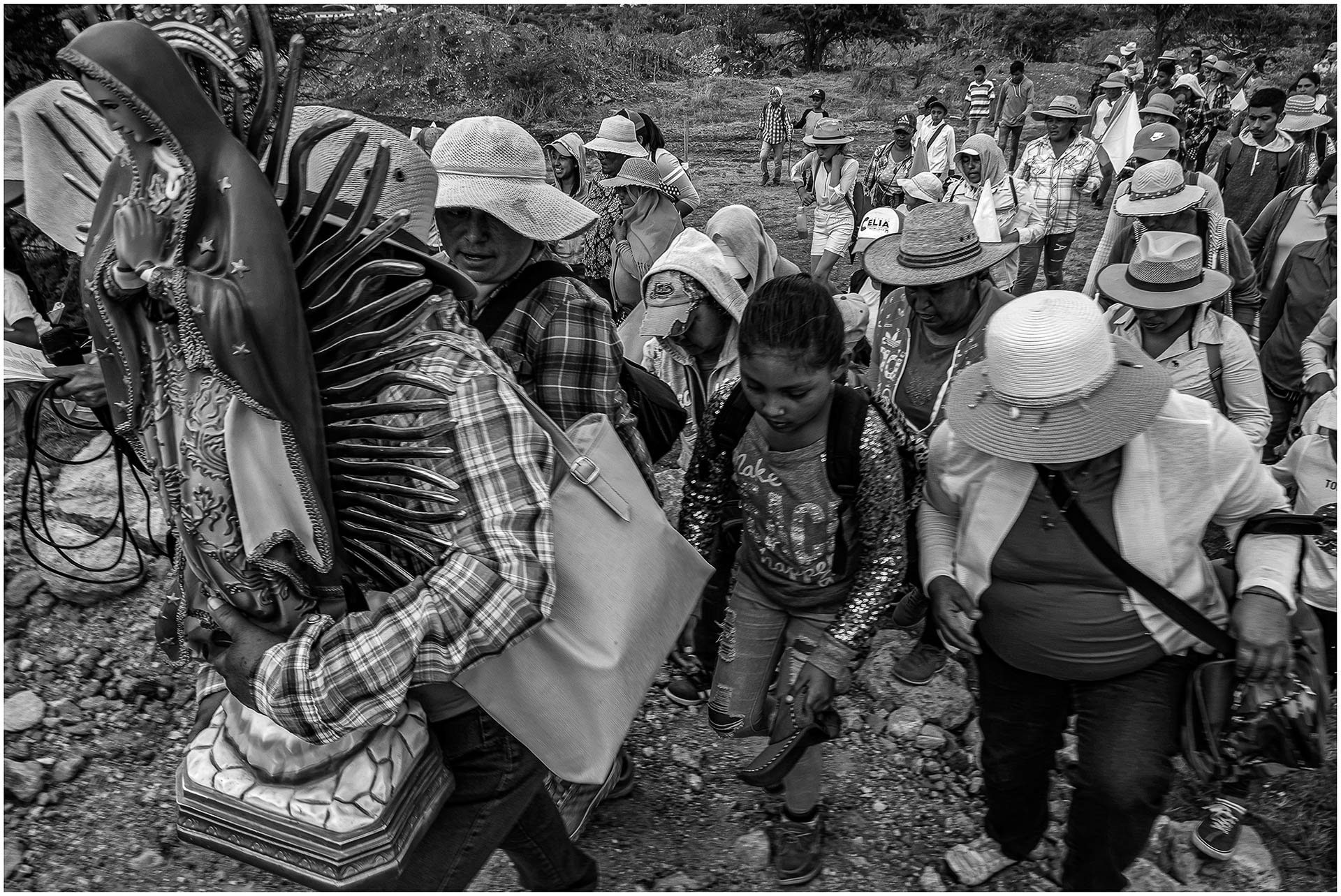 Este proyecto documenta no solo el recorrido físico, sino las relaciones humanas que lo sostienen: la solidaridad espontánea, el intercambio de alimento, el descanso compartido y la memoria transmitida entre generaciones. Las imágenes proponen una reflexión sobre un país marcado por la violencia y la incertidumbre, pero que encuentra en la tradición del peregrinar una forma de continuidad y pertenencia.