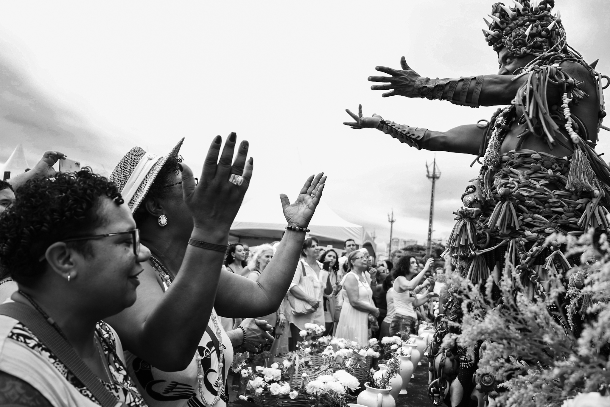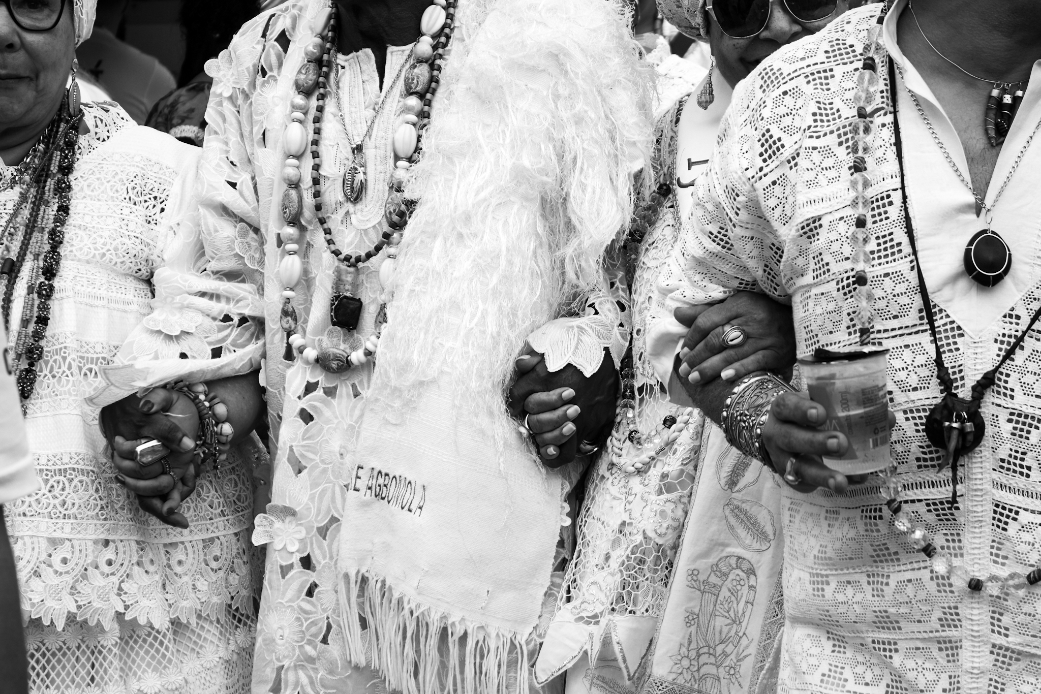 Em preto e branco, esta série percorre manifestações de fé, ancestralidade e resistência presentes na cultura afro-brasileira. As imagens capturam momentos de intimidade coletiva: gestos compartilhados, olhares profundos, corpos que dançam, mãos que se entrelaçam. O branco das vestes, símbolo de pureza e tradição, torna-se o fio condutor visual que atravessa gerações reunidas em celebração.