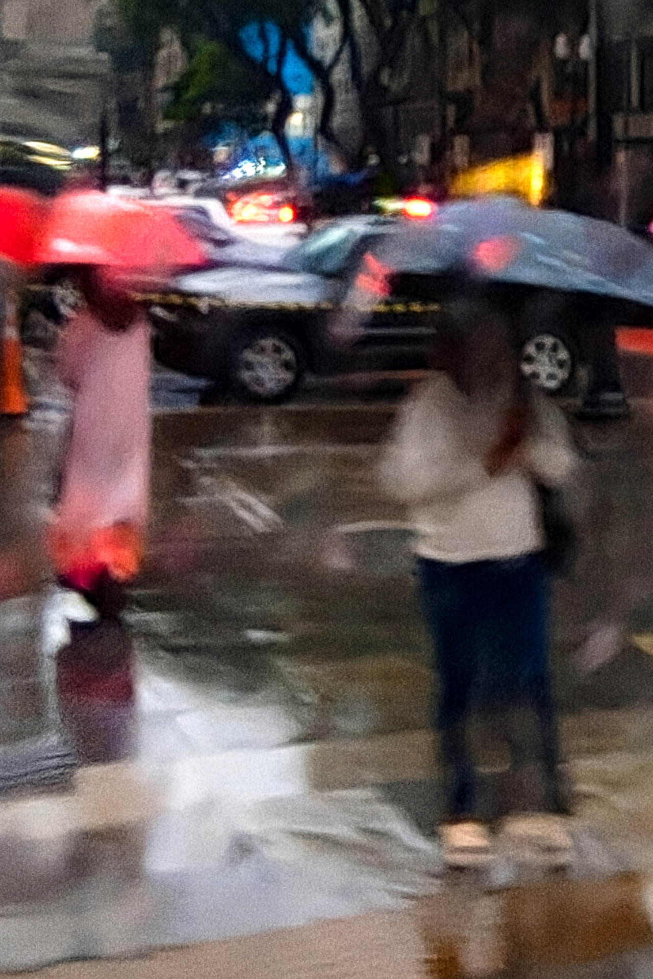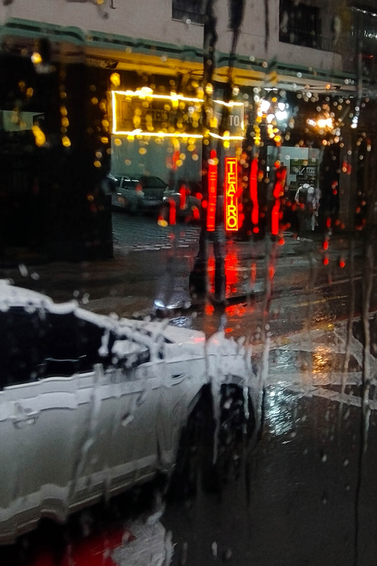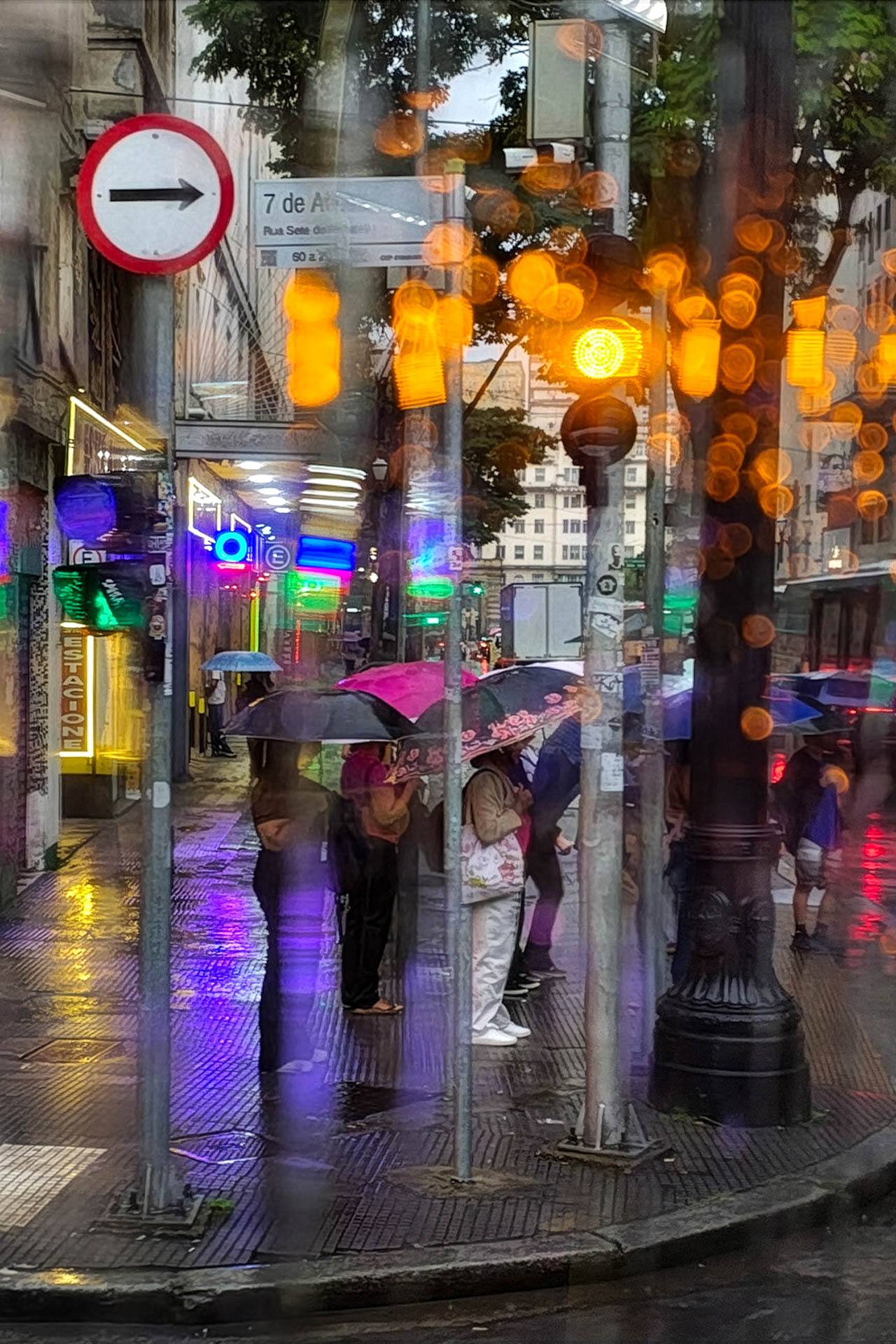 A série Refração Urbana investiga a experiência visual da cidade mediada pela chuva, compreendendo a água não apenas como elemento atmosférico, mas como um dispositivo óptico, poético e linguístico. Ao fotografar através do vidro molhado de ônibus em movimento, aproveitando a lentidão dos engarrafamentos para capturar o instante, a imagem deixa de ser um registro fiel da realidade. Ela passa a se constituir como um campo de distorções, refrações e dissoluções, criando uma visualidade instável onde manchas cromáticas diluem contornos e hierarquias. Nesse contexto, o reconhecimento dos elementos urbanos dá lugar à experiência sensorial.