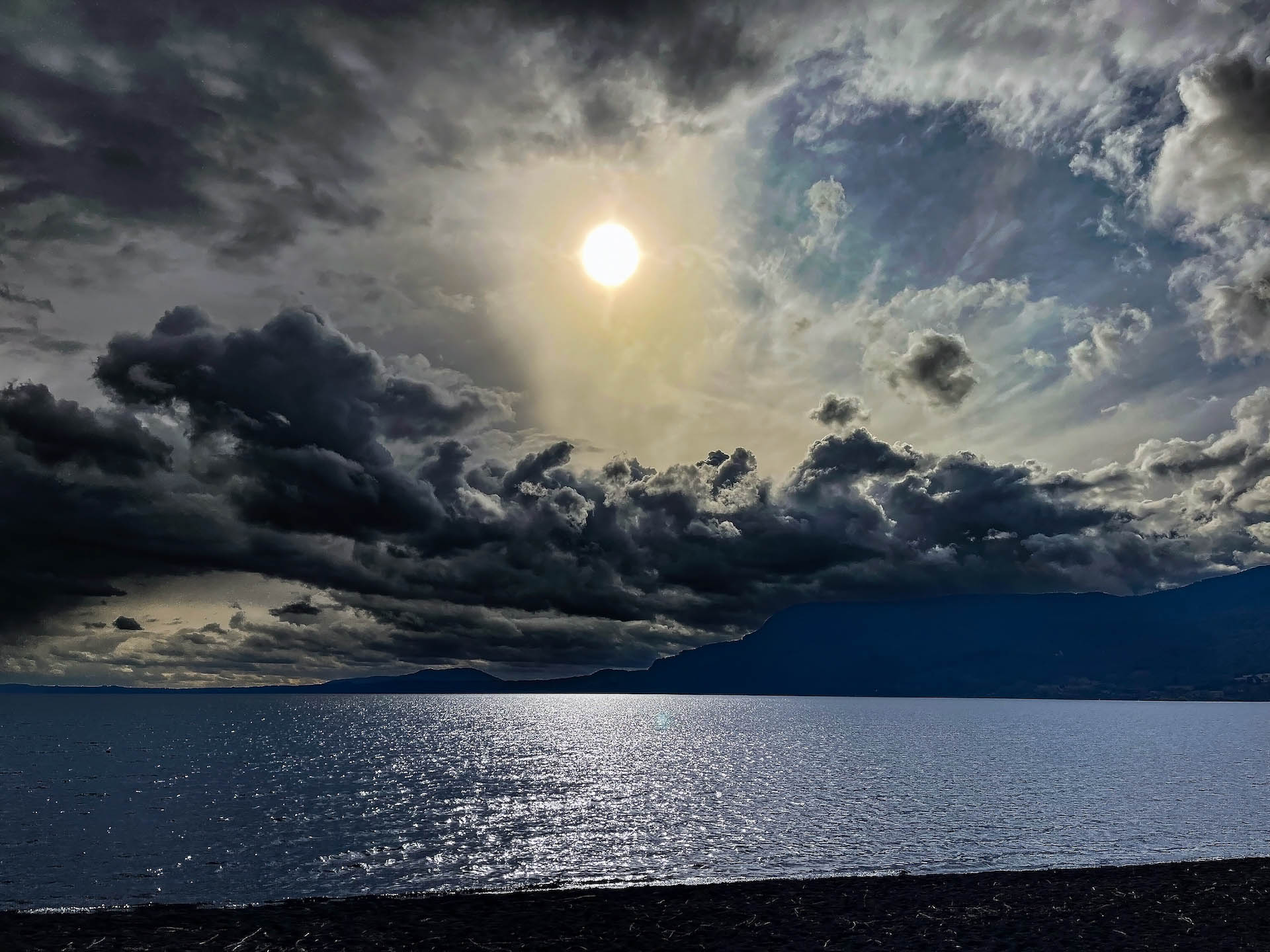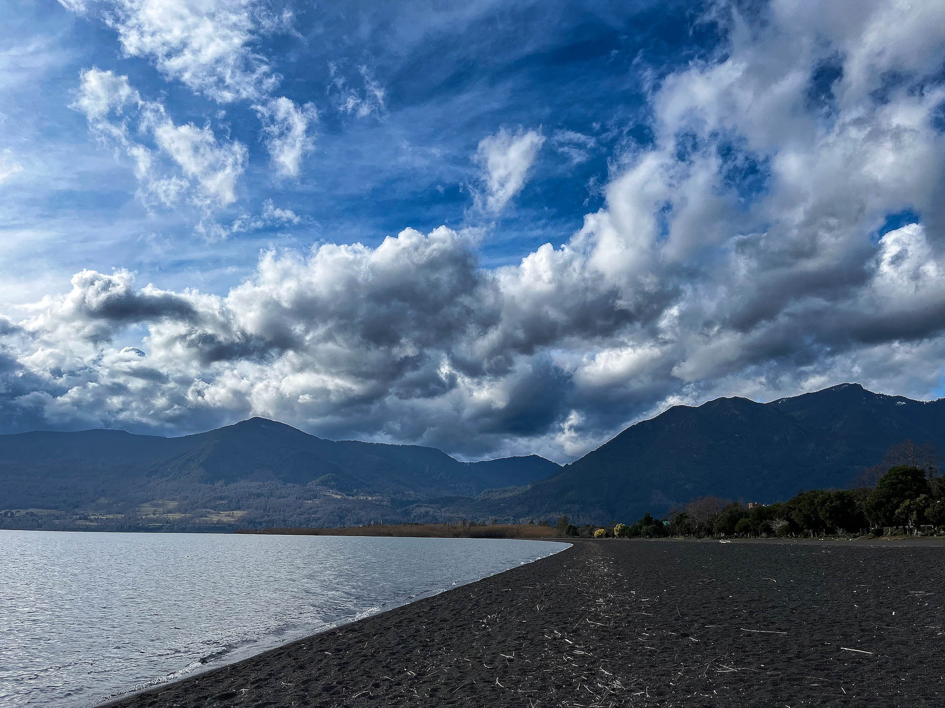 Foto 01 Fotografia realizada na cidade de Cabúrgua no Chile, realizada com celular, registra a intensidade e a dramaticidade do céu carregado de nuvens, antes da chuva. A composição busca evocar a magnitude e o poder da natureza.