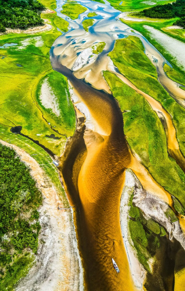 A estiagem expõe um cenário jamais visto: a vegetação esculpe a figura de um boto da Amazônia, prenúncio de que...