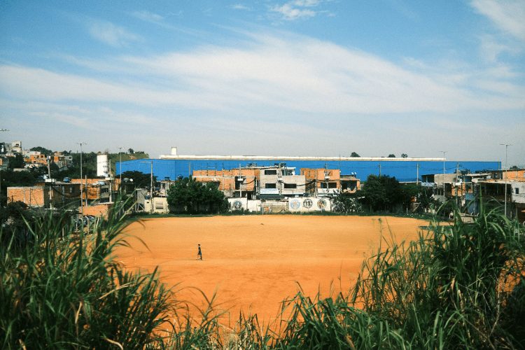 Jardim Vermelhão, 2024. Campo de Futebol no centro da comunidade, com o solo de terra vermelha característico do bairro.