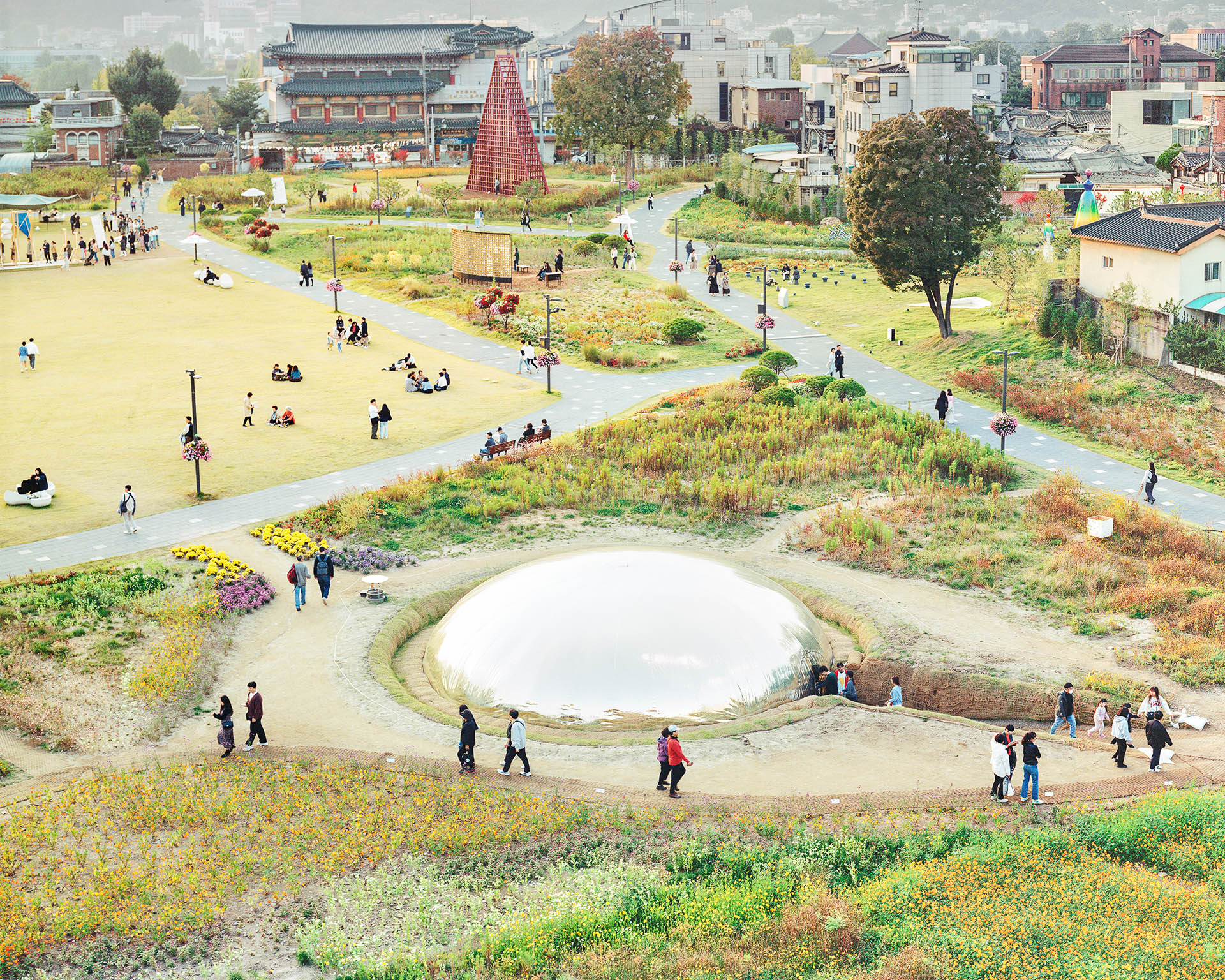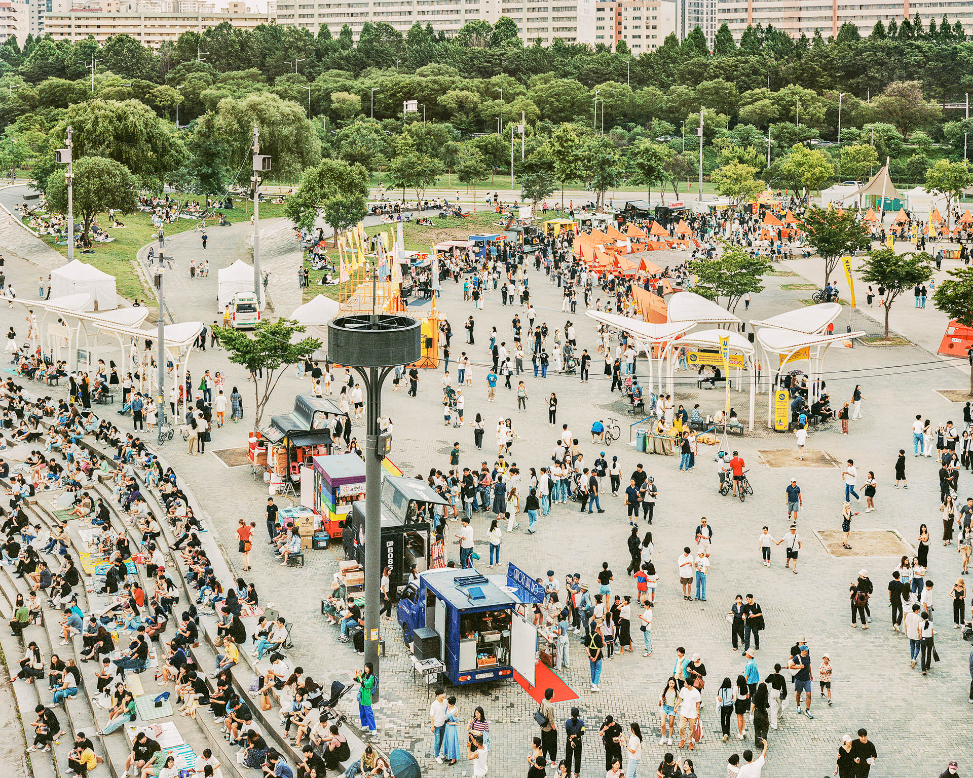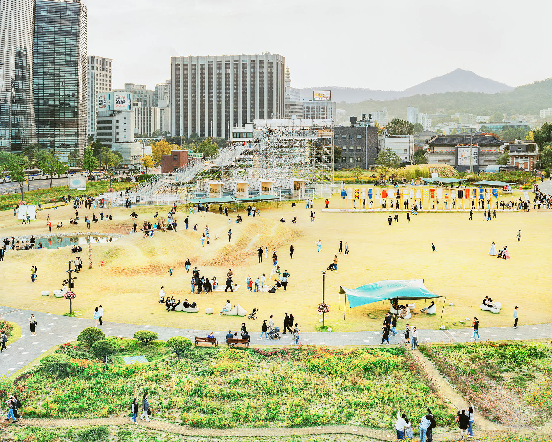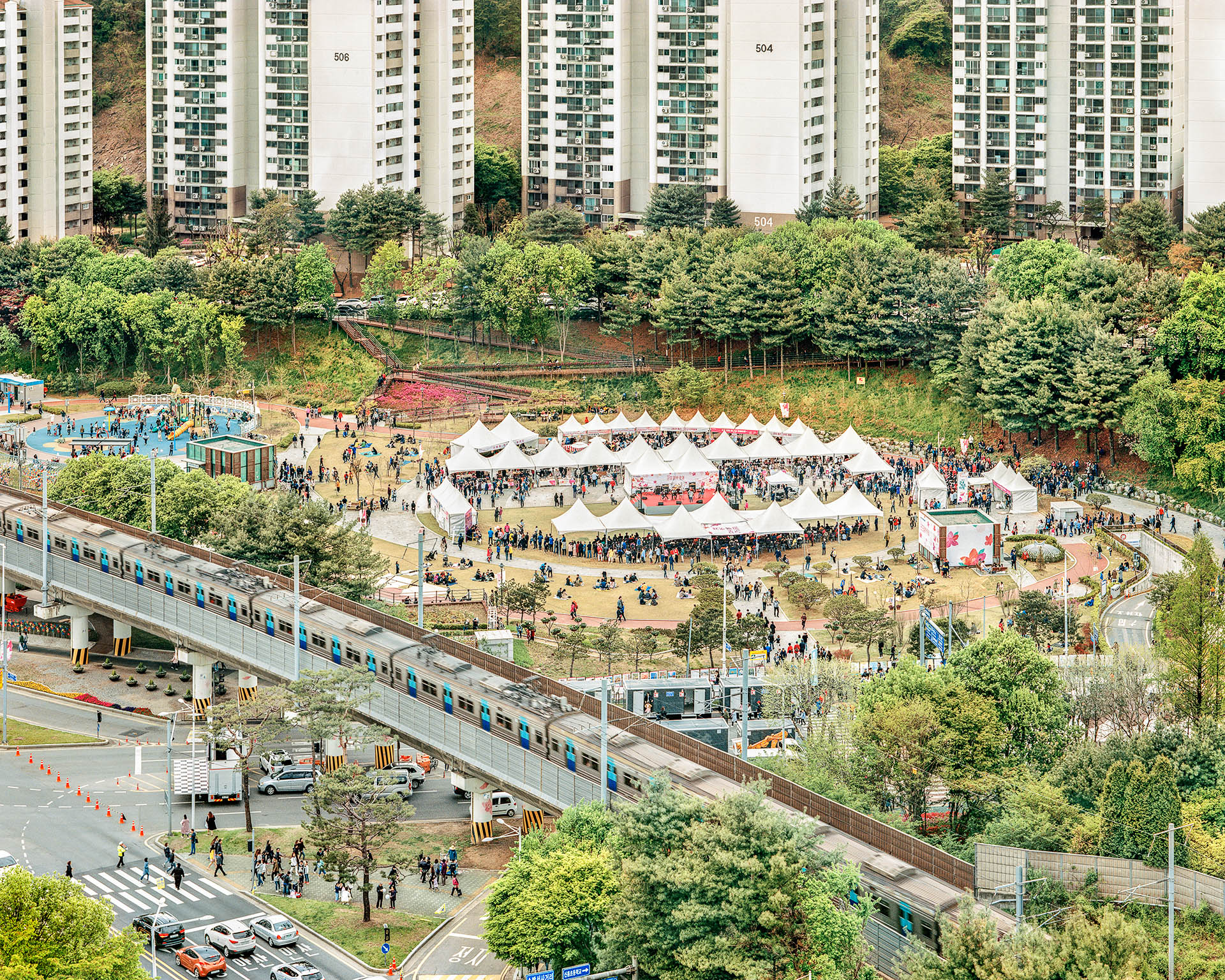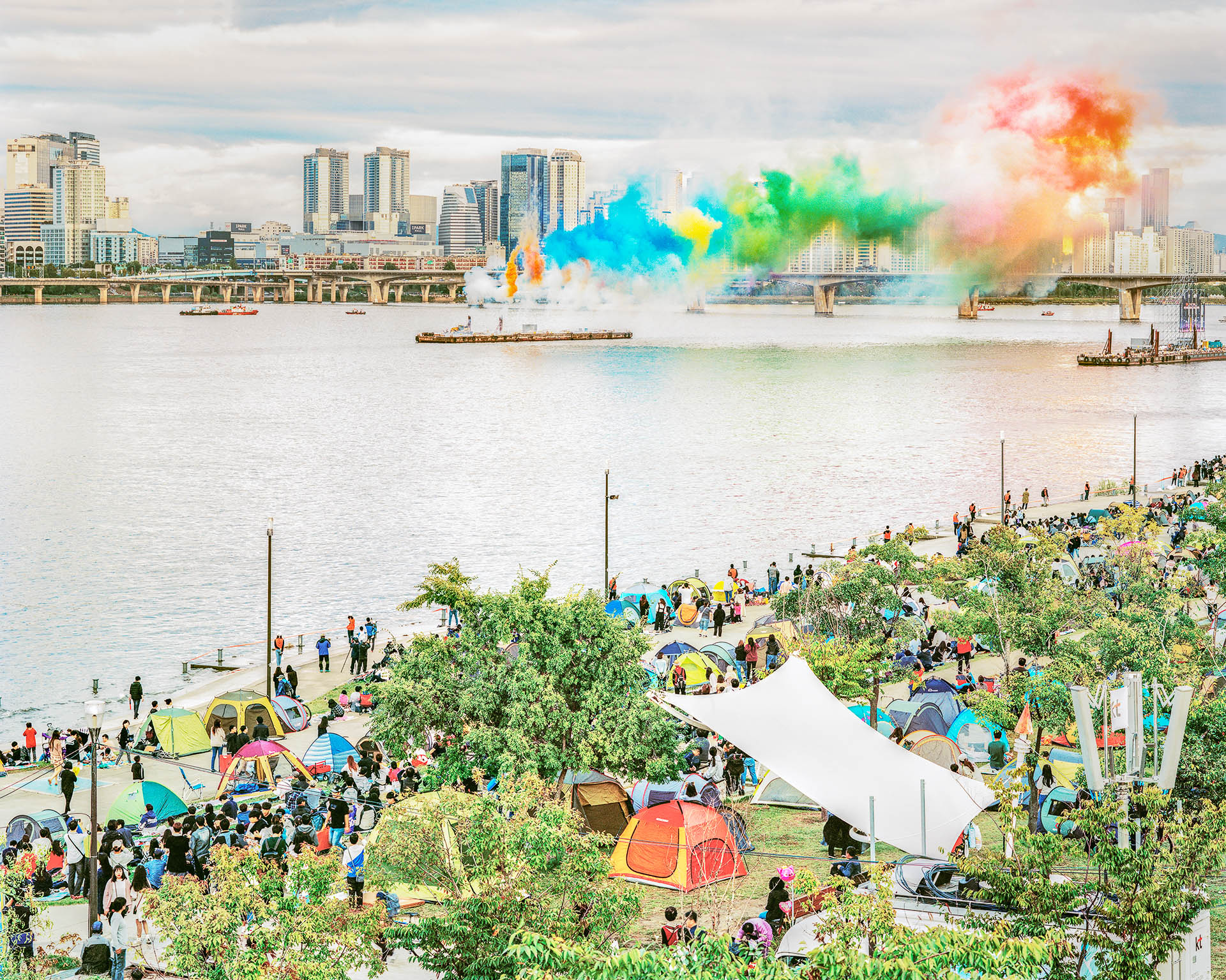 This work observes how everyday leisure expands into collective landscapes. Individual moments gathered within the frame form layered relationships through their arrangement. In doing so, the images reveal the emotional landscape of contemporary Korean society and the uniquely Korean “order of coexistence.”