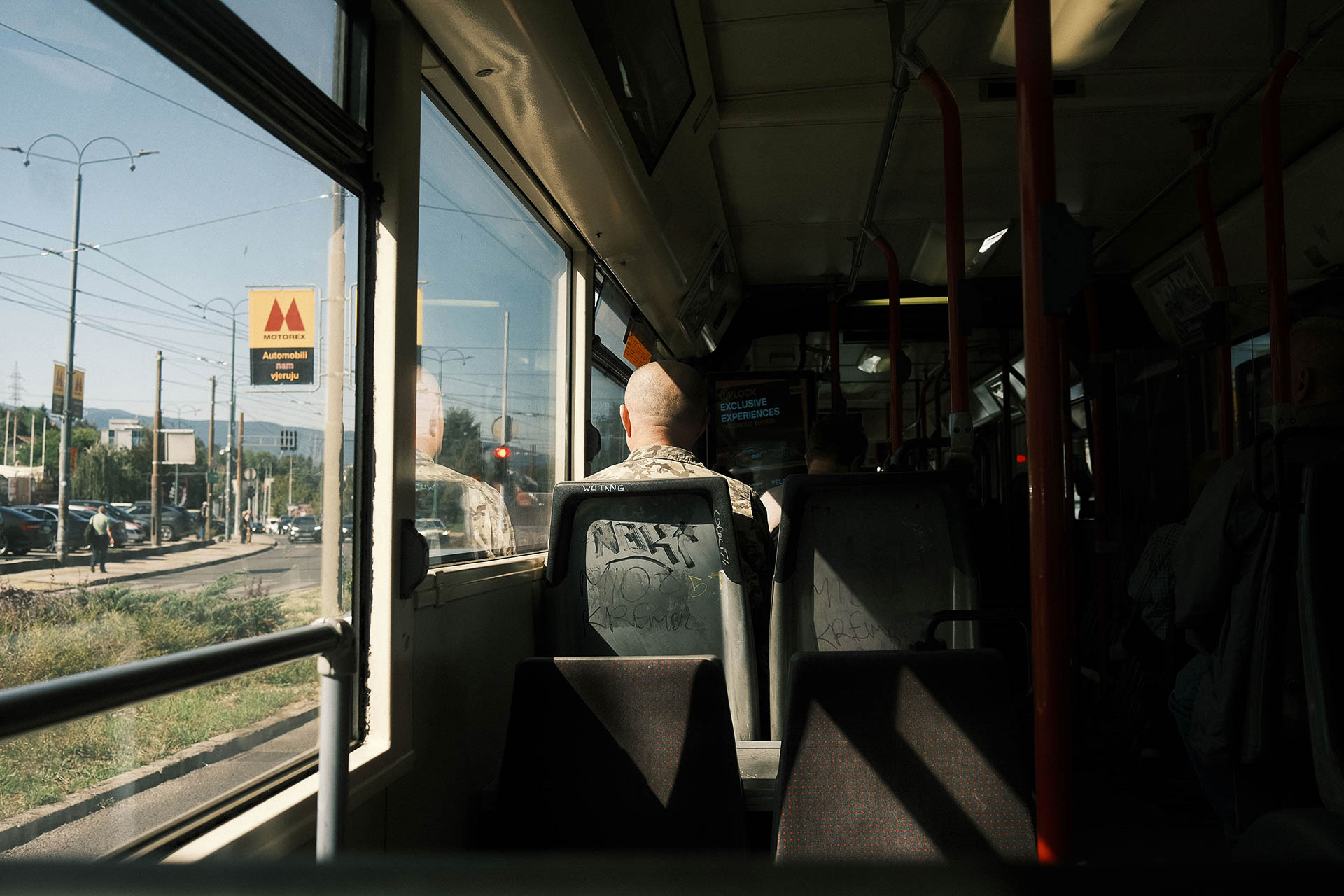 Soldado da Republika Srpska em um bonde com destino a Dobrinja, bairro de Sarajevo, Bósnia e Herzegovina.