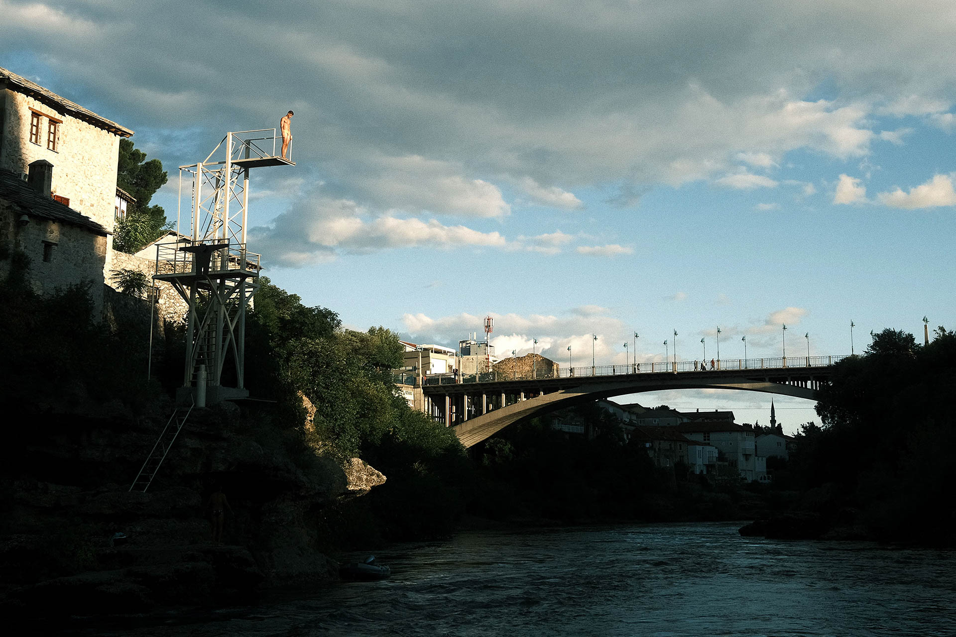 Jovem se preparando para um salto no rio Neretva, na cidade de Mostar, Bósnia e Herzegovina.